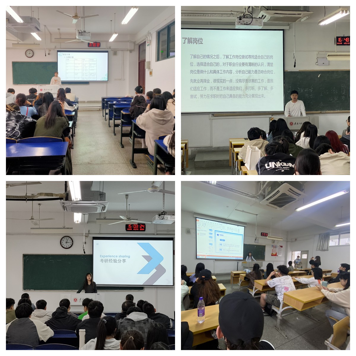 考研上岸的学长学姐从考试内容、学习计划、复试经验等方面为大家提供了许多建设性意见和建议,和同学们分享了包括考试题型、资料选择、作品集制作在内的诸多备考经验。毕业班就业学生代表们从获取招聘信息渠道、个人简历制作、职业选择、笔试和面试经验等方面分享了自己的求职经历,他们建议学弟学妹们要深入了解用人单位的需求和行业趋势,主动投递简历、积极参加各类招聘会和校园宣讲等活动,积极寻找机会,不断提升自己的就业竞争力。