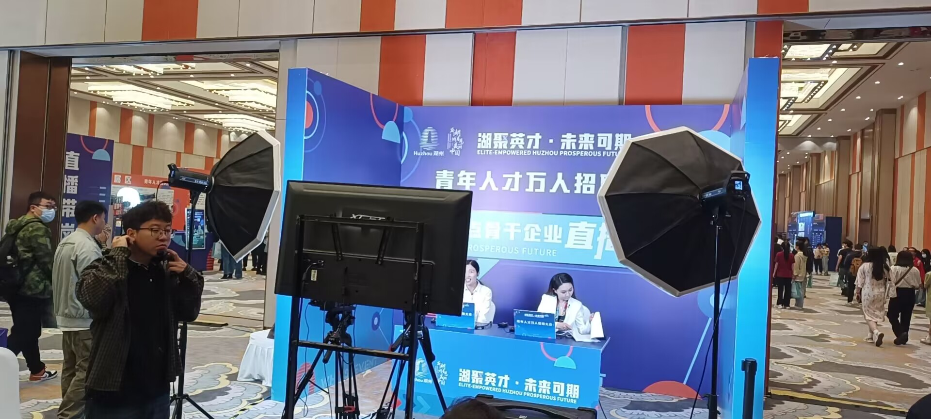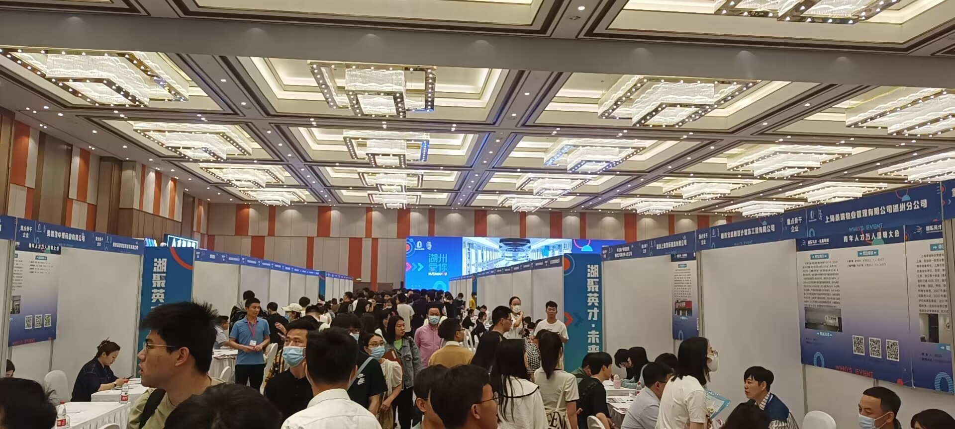 5月20日,湖州市举办首届湖州未来大会,本次大会以“聚青年人才·创美好未来”为主题,吸引全国173所高校的1.3万名大学生前往湖州求职。我校设计学院辅导员顾安骏、袁自坤、经济和管理学院辅导员徐博和80余名本科生、研究生参加招聘活动。