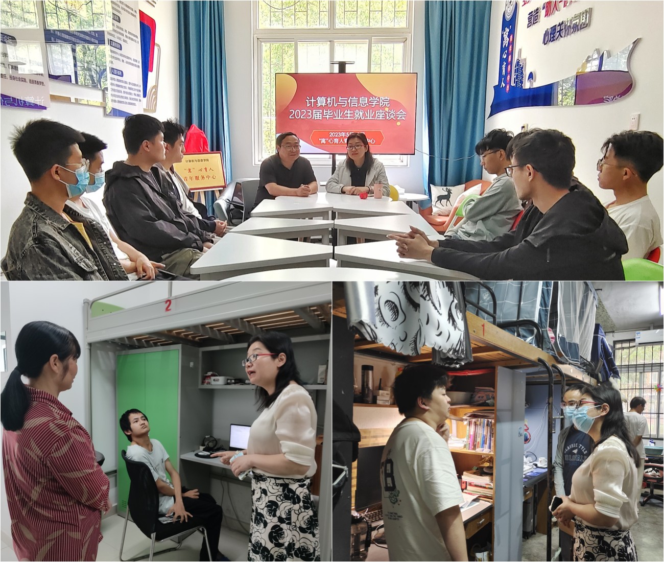 结合主题教育调研,为深入了解学生宿舍的实际情况,解决学生面临的实际难题,学院组织开展走访调研活动。在走访调研过程中,学院领导、辅导员走访特殊群体学生,与学生面对面交流,详细了解学生生活、学习情况,特别针对2023届毕业生开展就业座谈会,学院党委书记李卫东、副书记孙德茹与未就业学生面对面了解学生需求和想法,并提供指导意见和精准帮扶,同时还认真倾听学生的意见建议,为学生提供贴心、暖心服务。