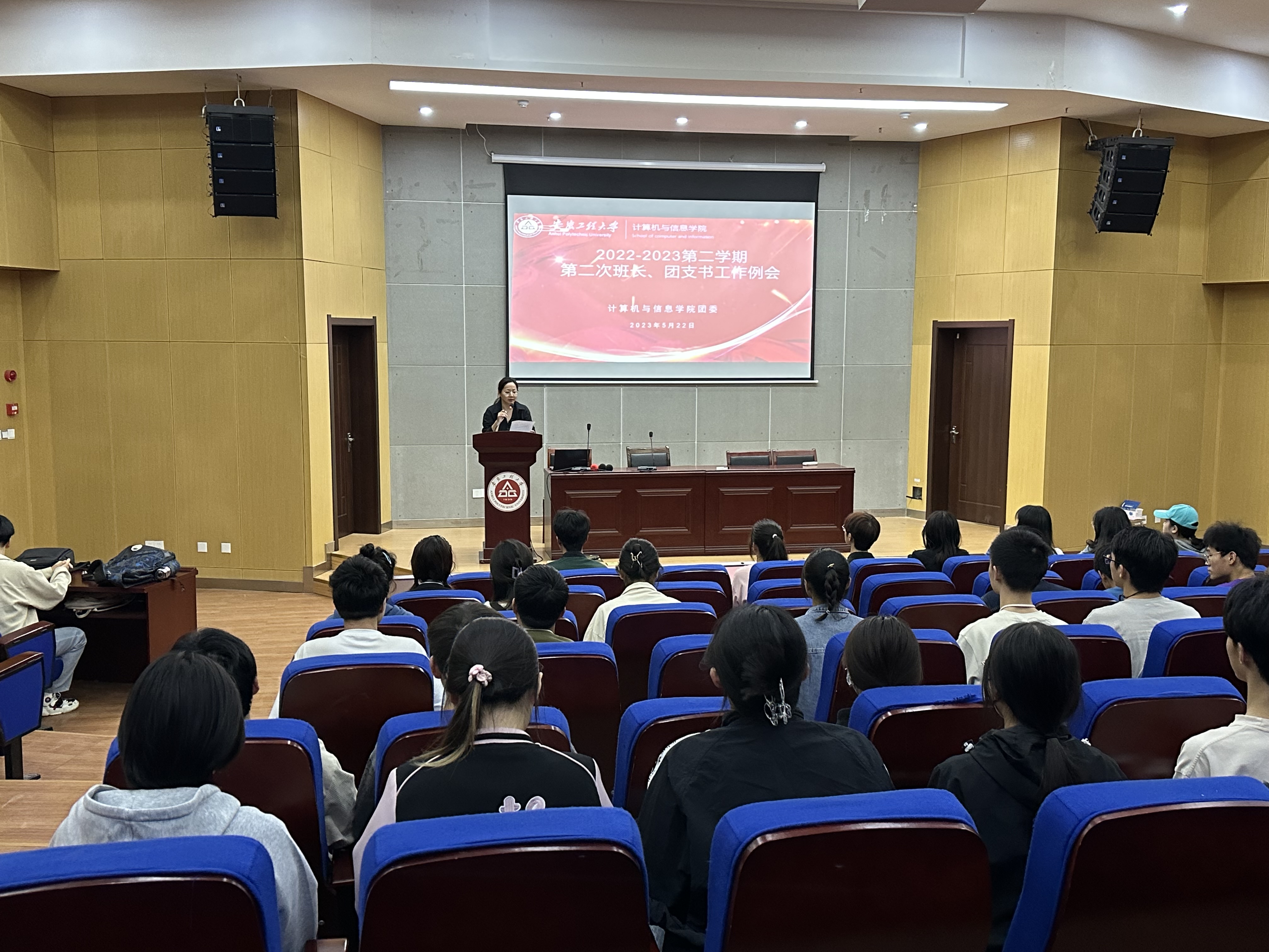 为推动主题教育深入扎实开展,提高团学组织和班级的执行力,确保各项活动有序开展,5月22日,计算机与信息学院在C座5楼报告厅开展团委中心组理论学习暨班长团支书工作例会,院团委副书记吕寅、院团委骨干成员和各班级班长团支书参加。