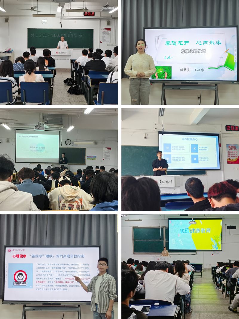 全体辅导员老师围绕可能出现的心理问题、如何调节不良情绪、学校心理咨询服务方式等方面展开论述,结合学生身心发展特点,通过生动形象的案例和有趣的视觉游戏帮助大学生认识心理健康基本知识,掌握心理调试基本技能。本次班会提高了同学们的健康知识水平,增强了同学们的心理健康意识,为学生的健康成长成才夯实了基础。