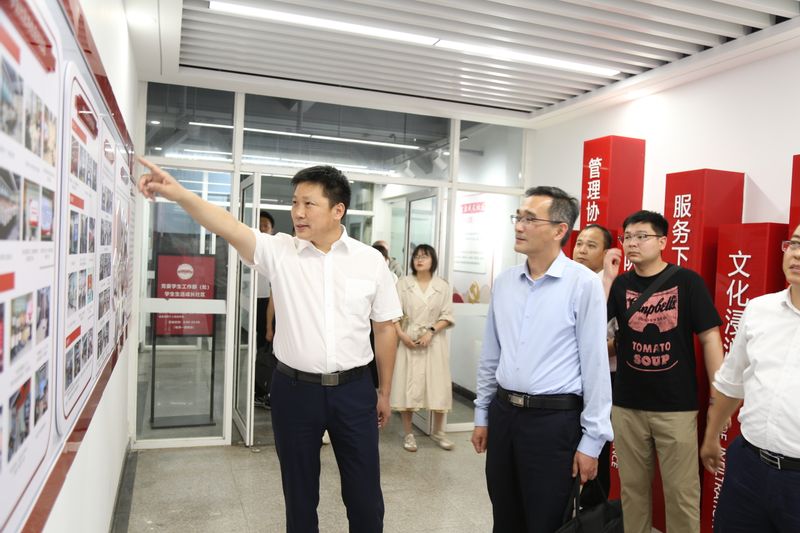 在合肥学院,该校学生处处长丁增云介绍了合肥学院学生工作基本情况,重点对“一站式”学生社区建设背景、推进情况、特色成效、运行机制等方面进行了介绍。会后,黄炜一行参观了学生公寓兰苑社区,对“一站式”学生社区的建设、使用等情况进行了深入的了解。