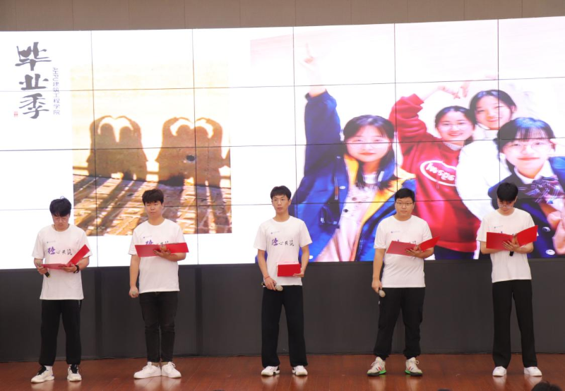 给排水192班郭玉虎等同学带来激情洋溢的朗诵《我爱建工》,为在场毕业生拾起在校四年的点点滴滴,表达了对母校培养的感恩之情,崇尚“厚德·博学·严谨·善建”院训,爱那厚实生命里融就的工程师精神。