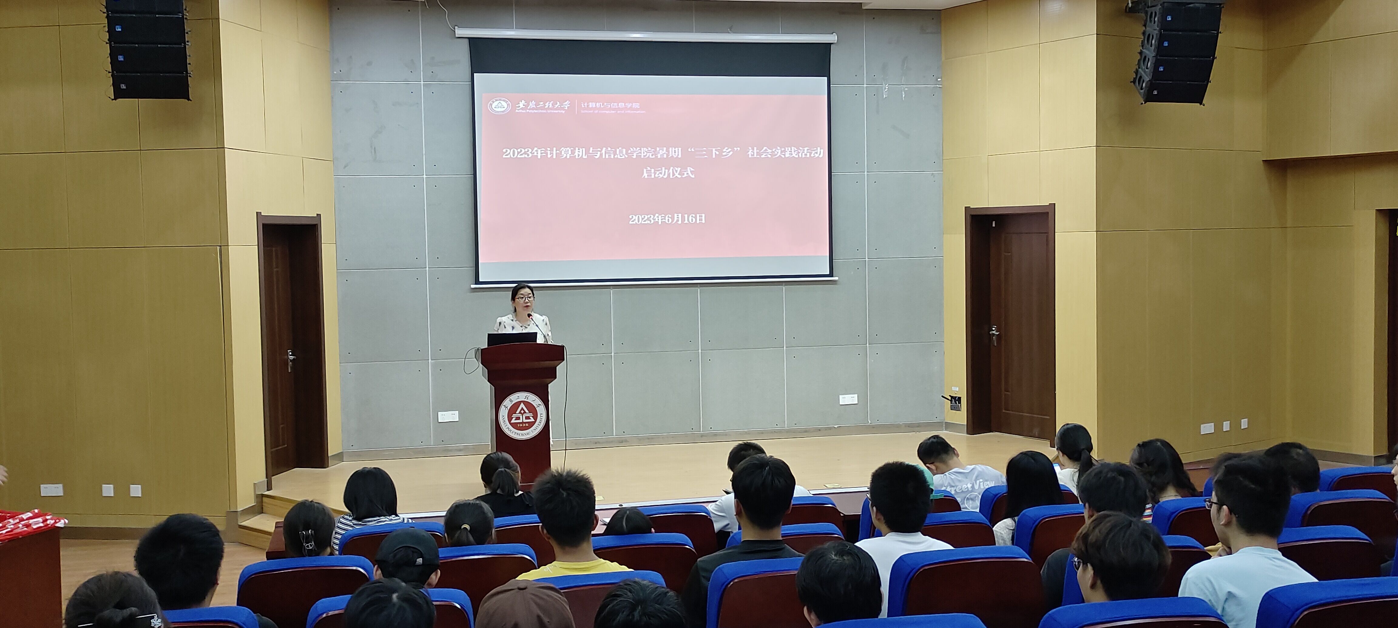 为深入开展学习贯彻习近平新时代中国特色社会主义思想主题教育,将社会实践活动与“三全六专”育人实践相融合度,6月16日,计算机与信息学院在C座5楼报告厅召开2023年暑期“三下乡”社会实践活动启动仪式暨培训会。院党委副书记孙德茹、院团委副书记、全体辅导员、各项目成员、指导老师,共计50余人参加会议。