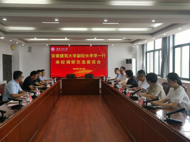 7月12日,安徽建筑大学党委常委、副校长李早一行来校调研交流。校党委常委、副校长郑健,党委常委、宣传部孙浩然出席座谈会。