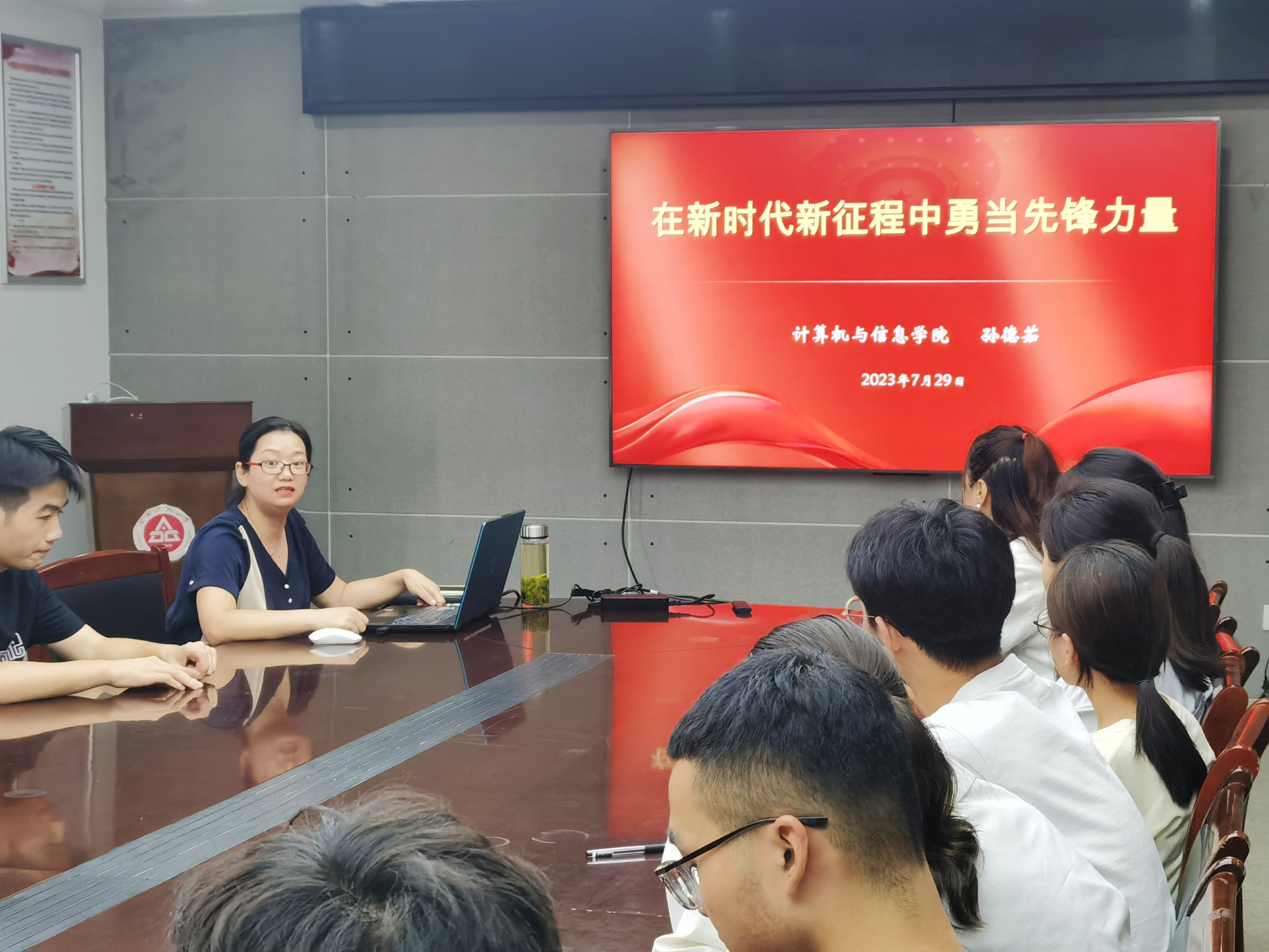 为深入推进主题教育,扎实做好暑期留宿学生临时党支部教育管理工作,引导学生党员深学细照笃行,强化思想引领和理论武装,7月29日,计算机与信息学院开展“习近平总书记与大学生在一起”学习分享主题党日活动,学院党委副书记孙德茹、辅导员魏晓飞以及暑期全体留校学生党员参加。