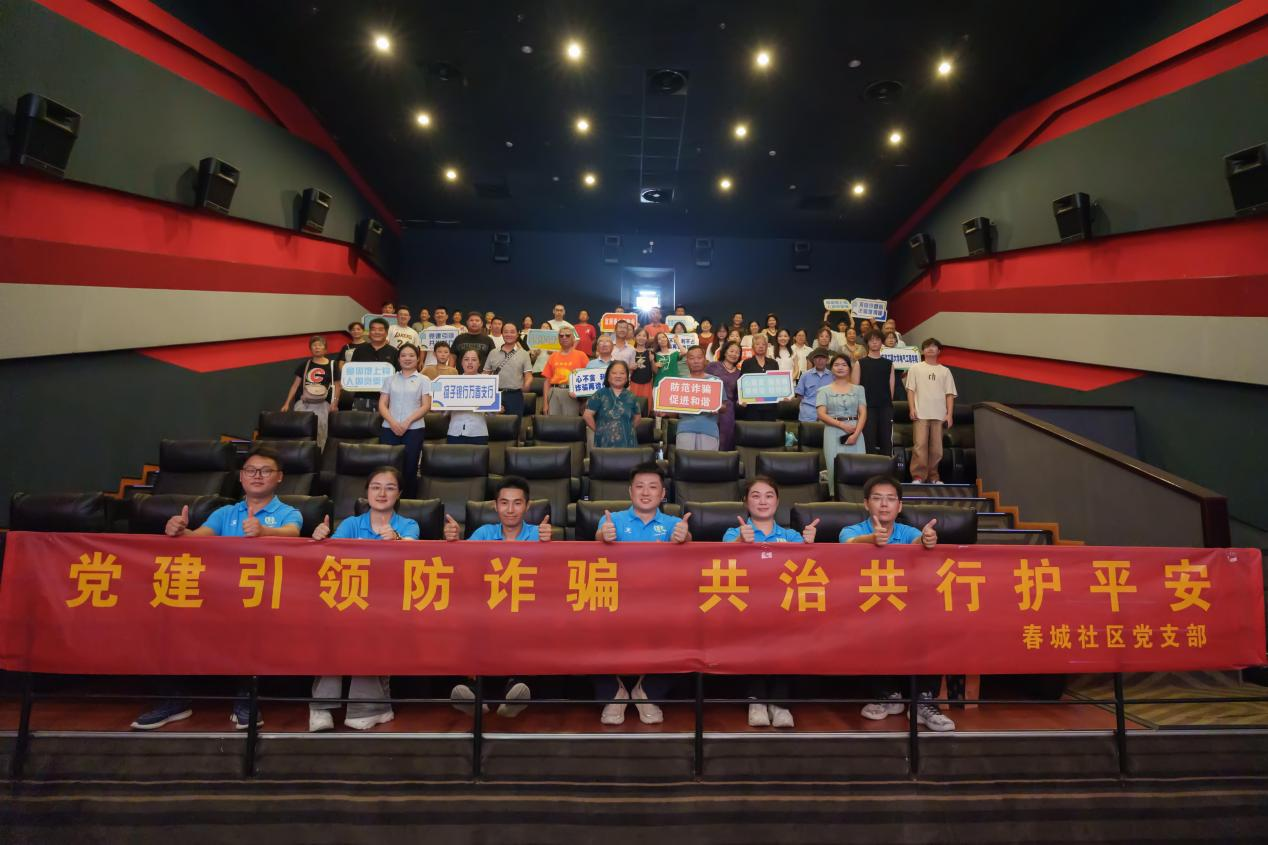 电影开场前,万春街道春城社区人员和学生为观影人员送上了别开生面的反诈普法宣讲,希望大家通过本次观影能对当前电信网络诈骗形式、常见诈骗手段有更深层次的认识,达成“反诈宣传人人有责”的共识。