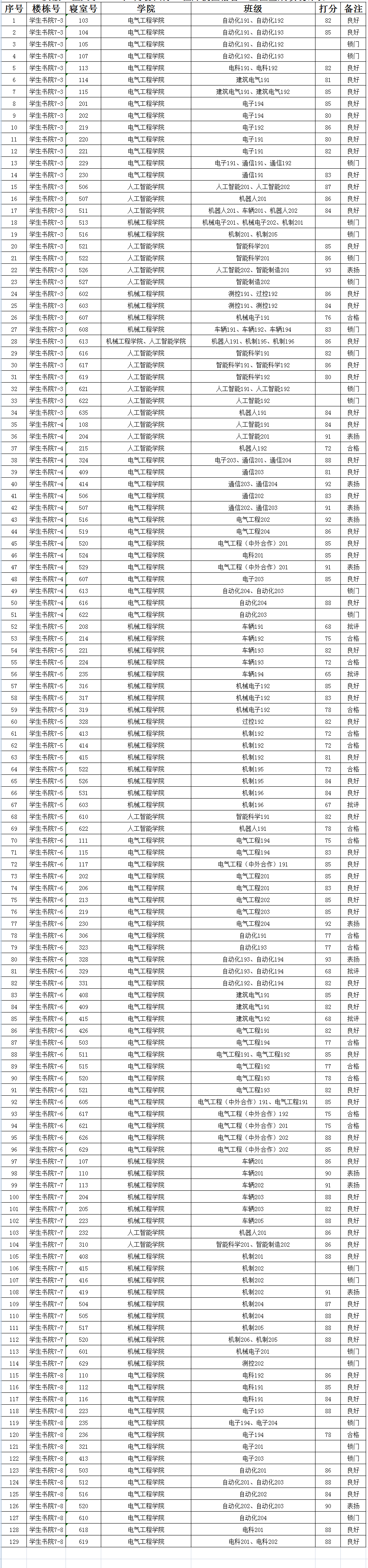 2023年4月份国际工程师校区宿舍卫生检查成绩统计表