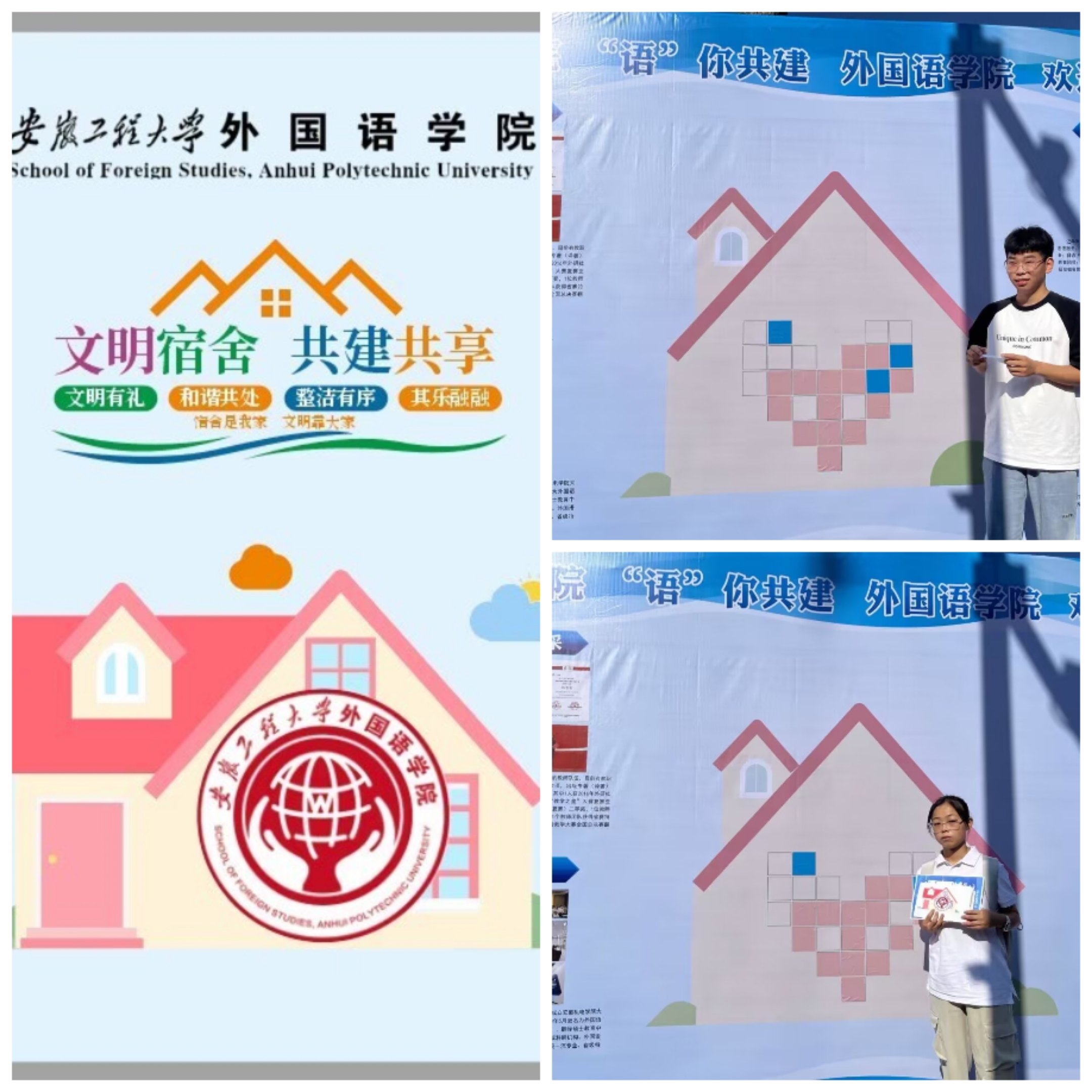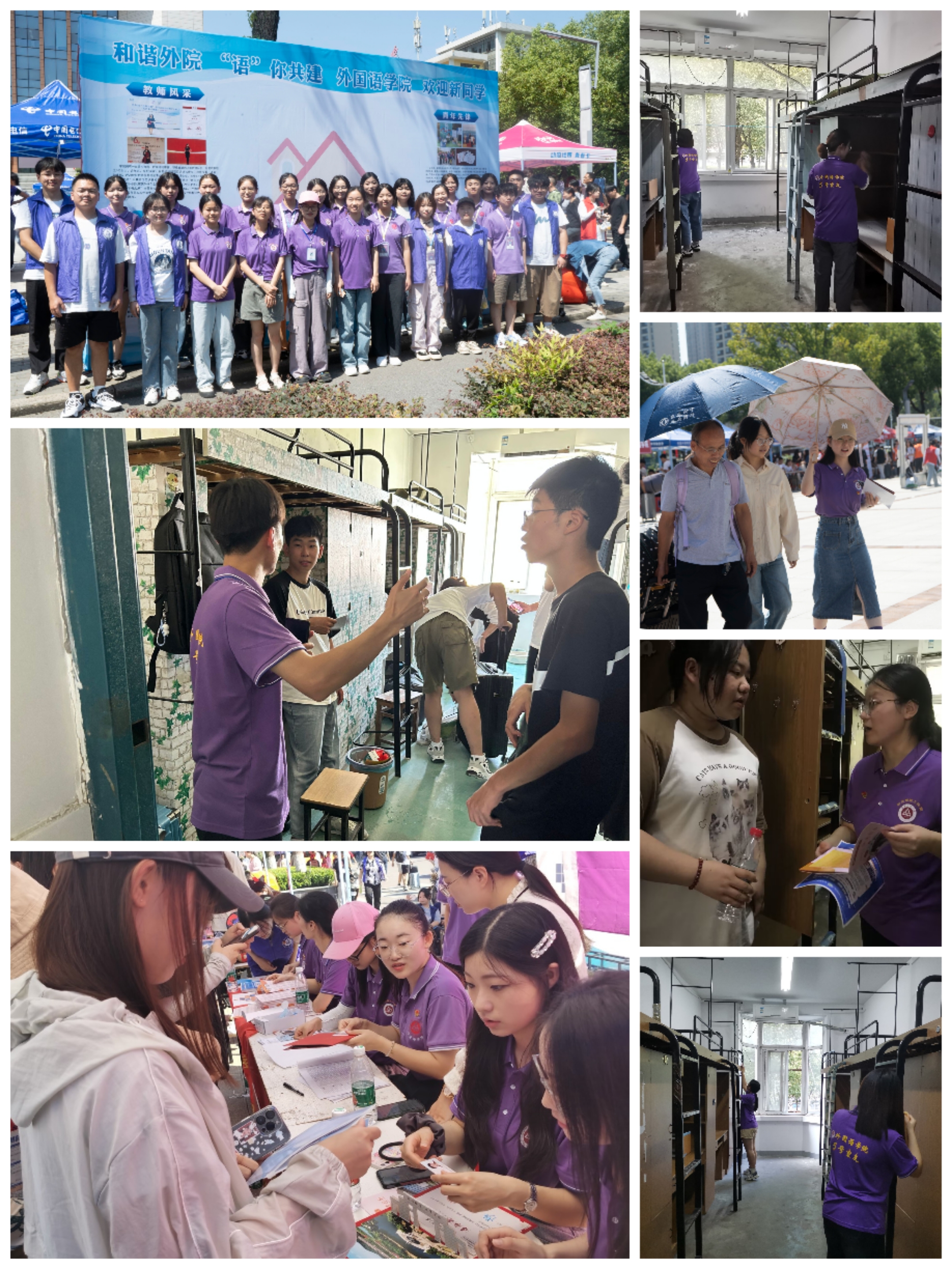 为了将“和谐外院”的理念传递给新生,学院精心设计了贴纸游戏。每个新生都会拿到一张帖纸,当全部寝室成员将自己的贴纸贴到寝室门上时会形成房子的图案,寓意和谐相处才能建设好寝室“小集体”;每个寝室最早到达的成员会拿到代表本寝室的贴纸,当全部新生寝室聚齐后,会形成一个爱心,寓意每个寝室都是外国语学院这个充满爱的“大集体”的一份子。学院党委书记董金权表示,“外国语学院虽然人数不多,但是大家非常团结,迎新前召开了相关会议5次,组织动员专业教师、辅导员、学生党员、学生干部共同组成了80余人的志愿者队伍,只为给新生营造出和谐温馨的氛围,让学生从进校开始,就以学院为家,在外国语学院这个大家庭中健康成长成才。”