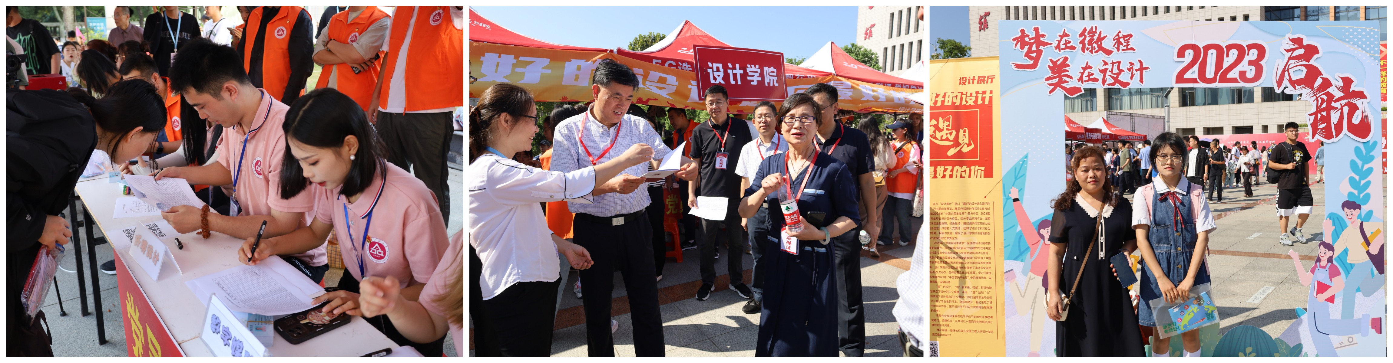“这就是今年中国农民丰收节的吉祥物啊,是叫和和美美吧!”“这个粮票印章太有意思了!”迎新现场,学院精心准备的以“最好的设计遇见最好的你”为主题的设计微展览,吸引了众多学生和家长前来参观体验。