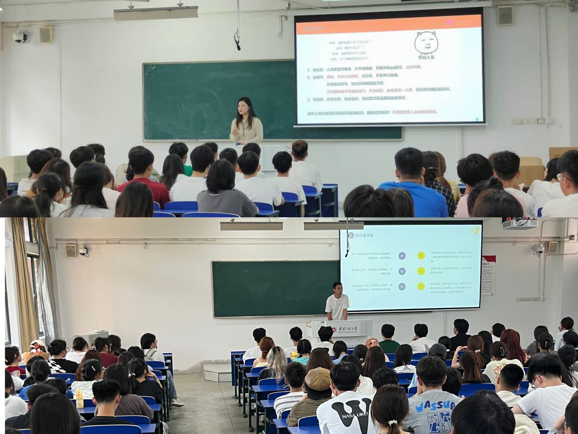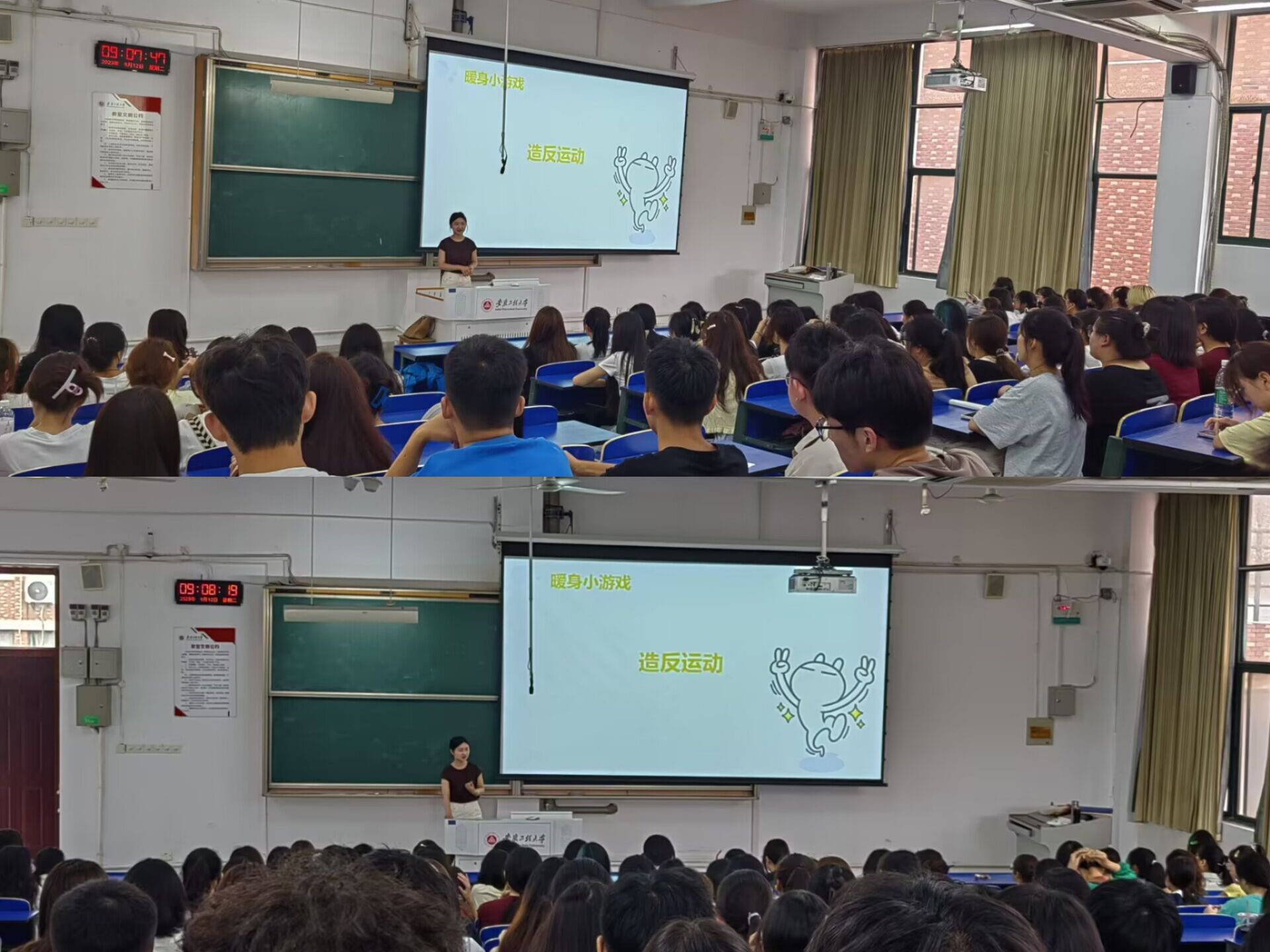 为了帮助新生尽快适应大学生活,预防可能发生的心理问题,9月12日上午,学院邀请心理健康教育中心的李梦菊、李梦圆两位老师为全体2023级新生作心理健康教育讲座。两位专业老师从人际关系、食宿问题、大学恋爱等与大学生活息息相关的话题引出,对同学们在学习生活中可能遇到的心理问题进行了分析、解答与引导,并希望大家在未来的大学生活中,要对个人的生活、学习有清晰的规划,学会自我管理。报告会现场,两位老师还组织同学们进行了心理测试。
