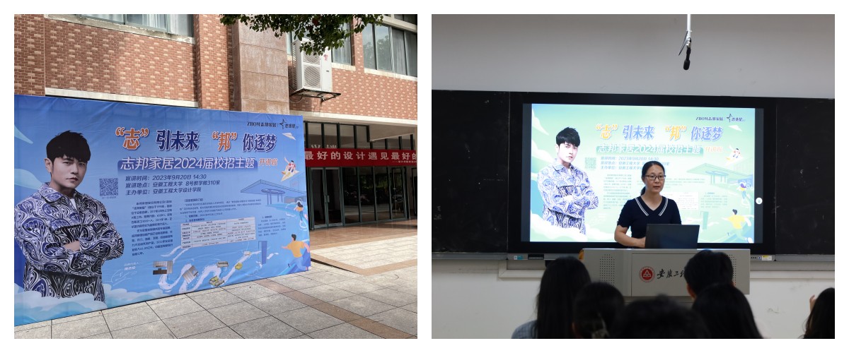 为贯彻落实党中央、国务院“稳就业”“保就业”决策部署,努力拓展就业岗位,精准搭建供需对接平台,9月20日下午,设计学院在8教310室举办志邦家居校园招聘专场宣讲会,邀请了设计学院校友、志邦家居股份有限公司建店中心设计总监周阳,人力资源部门经理吴莹莹等到场宣讲,设计学院及相关学院百余名毕业生参会,现场座无虚席,气氛热烈。