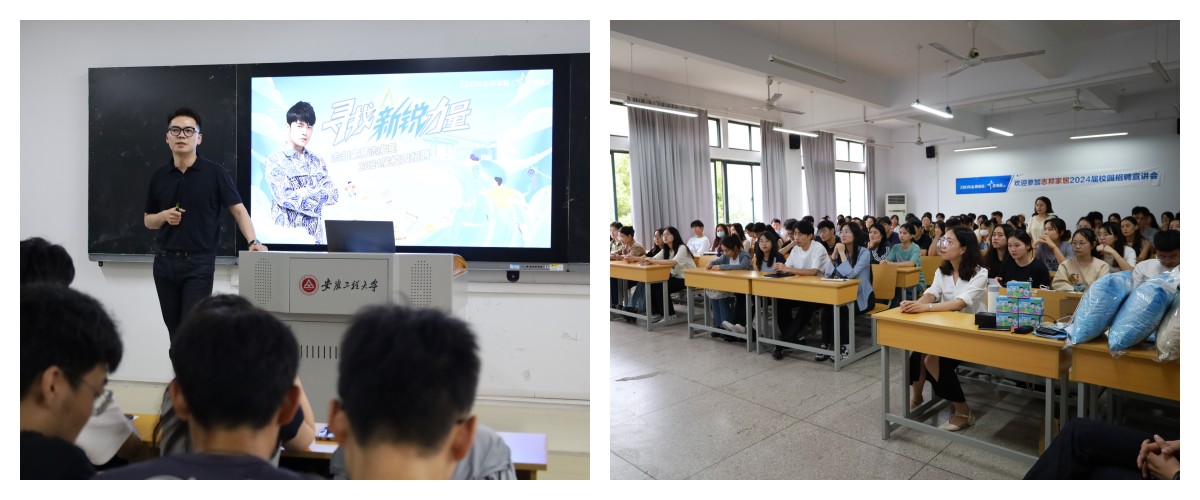 周阳作为学院2007级工业设计专业毕业的优秀校友,亲自担任宣讲嘉宾。身兼双重身份的他,对母校的精心培养和教育表达了感激,全方位地介绍了公司发展历程、主要业务分布、人才培养机制、校园招聘计划、个人学习成长经历等相关情况,向同学们表达了公司对人才的需求,诚邀更多优秀的安工程学子成为“志邦人”,共筑“志邦梦”,并现场与毕业生进行了答疑交流。宣讲结束后,50余名同学投递简历,并在现场与企业负责人一对一面试。