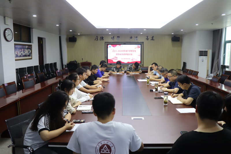 座谈会上,李烨带领与会师生学习了《关于开展2023-2024学年第1学期师生思想状况调研的通知》,指出本次座谈会是促进“三抓”和“三全六专”工作落实落细,持续深化“三全育人”综合改革,贯彻落实“一线工作法”的重要举措,目的是及时了解新学期同学们的思想动态、心理状况和解决学生的合理诉求,做好解疑释惑和帮扶工作。曾磊指出,了解新学期师生思想动态、心理状况以及合理诉求,是有针对性地做好解疑释惑和帮扶工作的重要保障,是确保思想政治教育取得实效,确保意识形态安全的重要形式,是提振师生信心,营造团结奋进育人环境的重要内容。