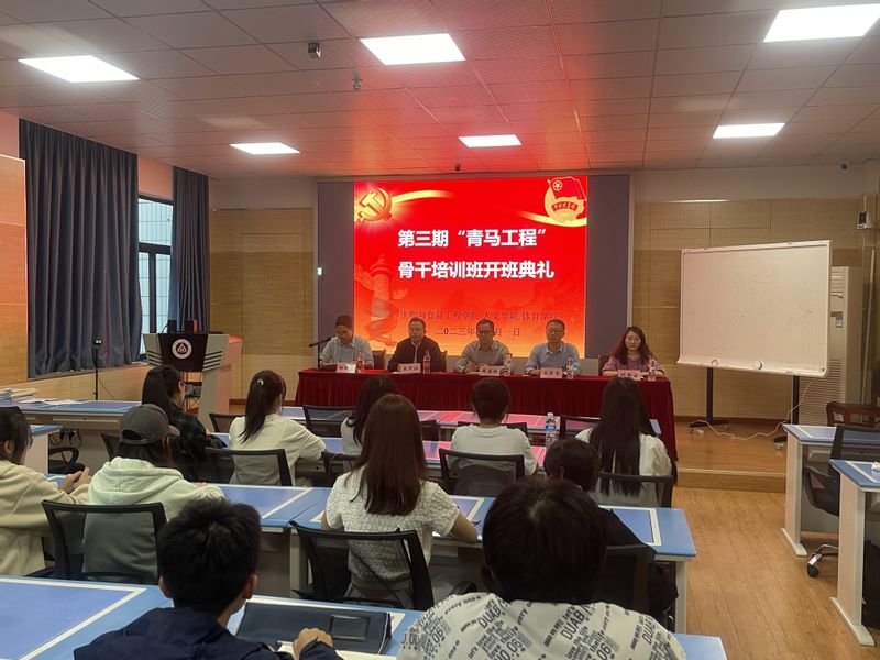为教育引导青年大学生坚定不移跟党走,践行“三全六专”育人实践,11月1日,生物与食品工程学院、人文学院、体育学院在生物与食品工程学院虚拟仿真中心联合举办第三期“青马工程”骨干培训班开班典礼,校团委副书记周海林、人文学院党委副书记王中江、生物与食品工程学院党委副书记王彦青、学院团委副书记及三个学院的近70名学员参加开班典礼。