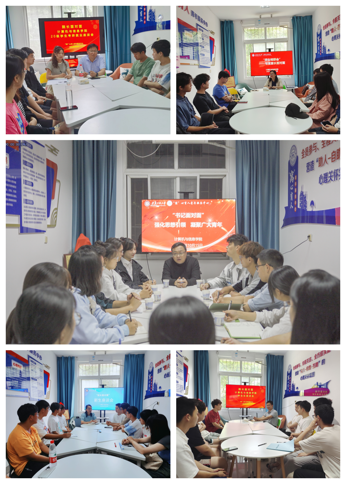 计算机与信息学院在“一站式”学生社区建设过程中,坚持“以学生为中心”的育人理念,强化“三全六专”育人实效,学院领导班子、“双带头人”教师党支部书记、辅导员、朋辈教育四方联动,下沉领导力量、思政力量、管理力量、服务力量到宿舍,夯实“阵地力量”,实现四方育人力量全覆盖,延伸思政育人新空间、构筑学生党建前沿阵地、打造“三全六专”实践园地、争创寝室文明建设样板高地,推动形成学生社区育人新生态,全方位助力学生全面发展。
