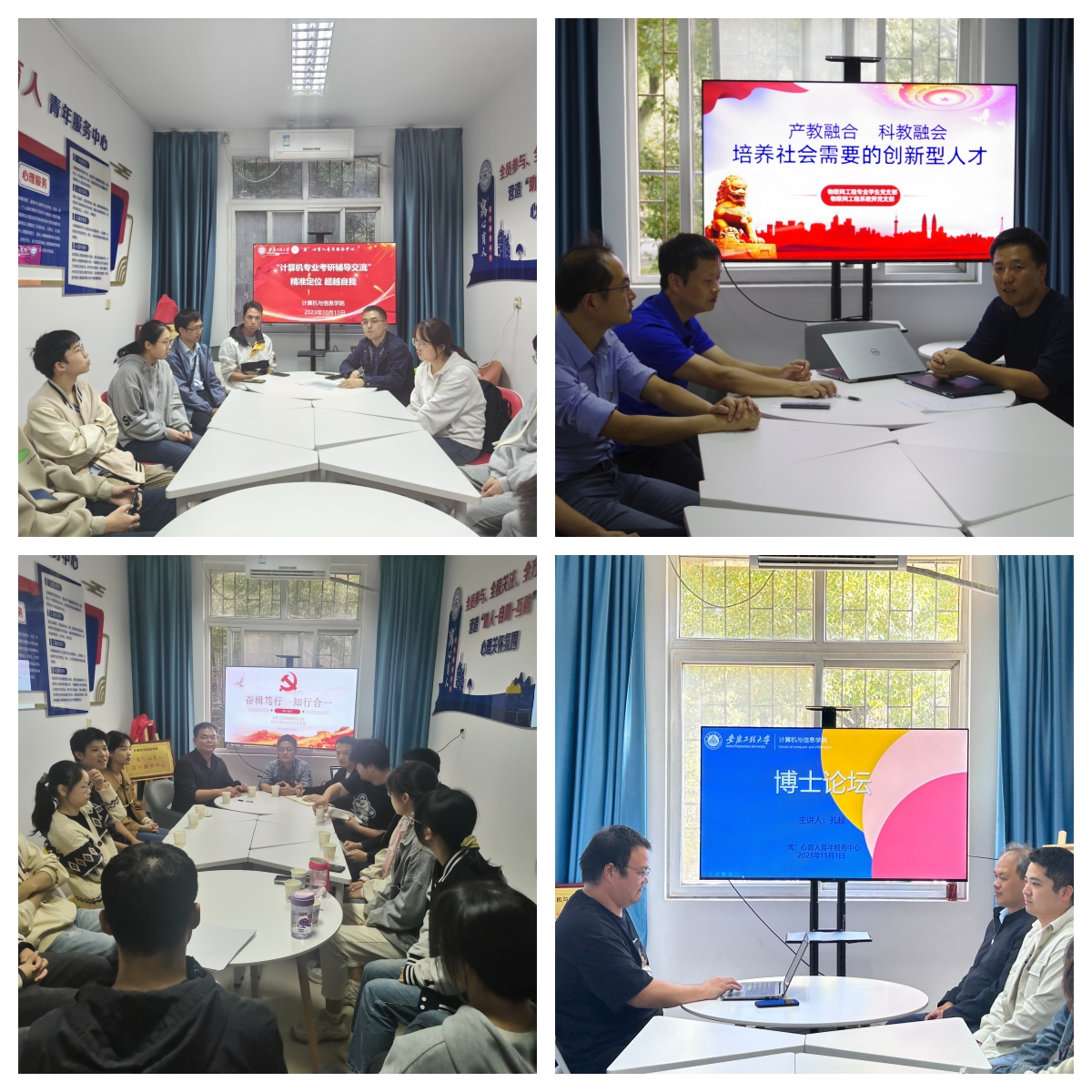 依托“一站式”学生社区聚焦党建引领核心功能,四位“双带头人”教师党支部书记深入学生社区,聚焦思想引领和成长服务,加强学生对专业知识、学科前沿、学科发展走向等问题的了解和掌握,增进了专业课教师和学生之间的学术沟通和思想交流,在学生社区营造了良好的学术氛围;结合学生需求,开展考研、就业、专业辅导交流会,引导学生树立正确的学习观念,帮助学生找到发挥自我潜能的路径。通过“党建+专业”工作模式,全面提升“8+8”全过程个性化人才培养质量,扎实推进“三全六专”育人实践。
