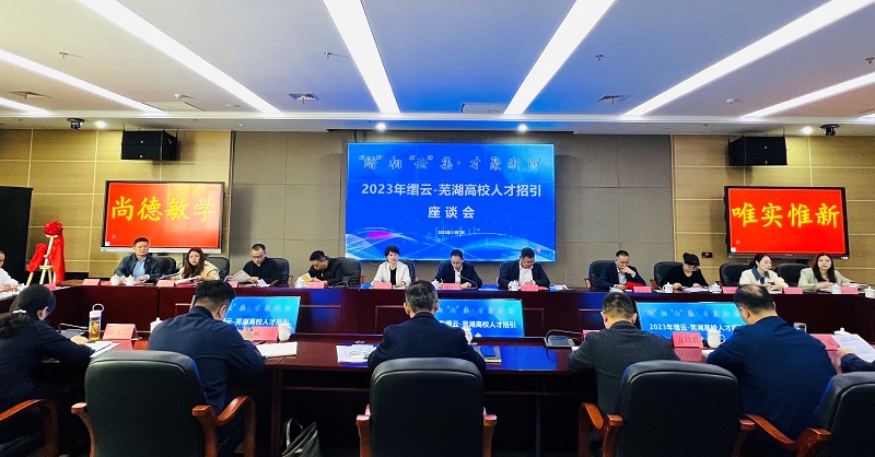 11月7日上午,浙江缙云-芜湖高校人才招引座谈会在我校图书馆201会议室举行,缙云县委常委、副县长陈帅锋,缙云县委常委、丽缙智能装备高新技术产业园区管委会党工委副书记李宣,缙云县委组织部副部长杜叶飞以及相关职能部门、企业代表来我校开展座谈交流。校学生处处长黄炜,安徽信息工程学院就业处副处长杨文宝,安徽机电职业技术学院招生科科长武昊以及我校相关二级学院学生工作负责人出席活动。