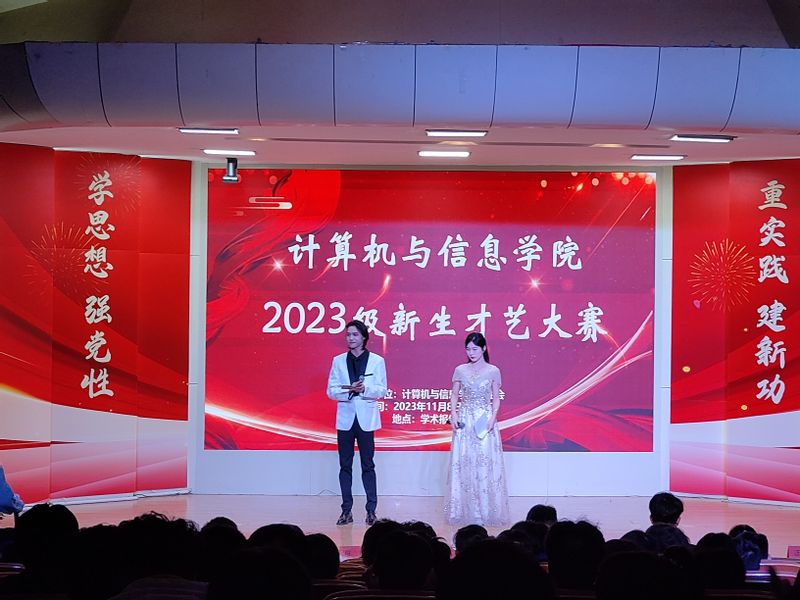 为落实“三全六专”育人实践要求,丰富大学生校园文化生活,展现新生青春风采,11月8日,计算机与信息学院在学术报告厅举办2023级新生才艺大赛。院团委书记吕寅,新生辅导员陈安、瞿陆子慧、承孝云老师参加。校青年传媒中心主任余光照、院街舞训练营导师孙玮、院合唱训练营导师汪天一、院2022年新生才艺大赛冠军贾心悦、院十佳歌手李杰担任评委。