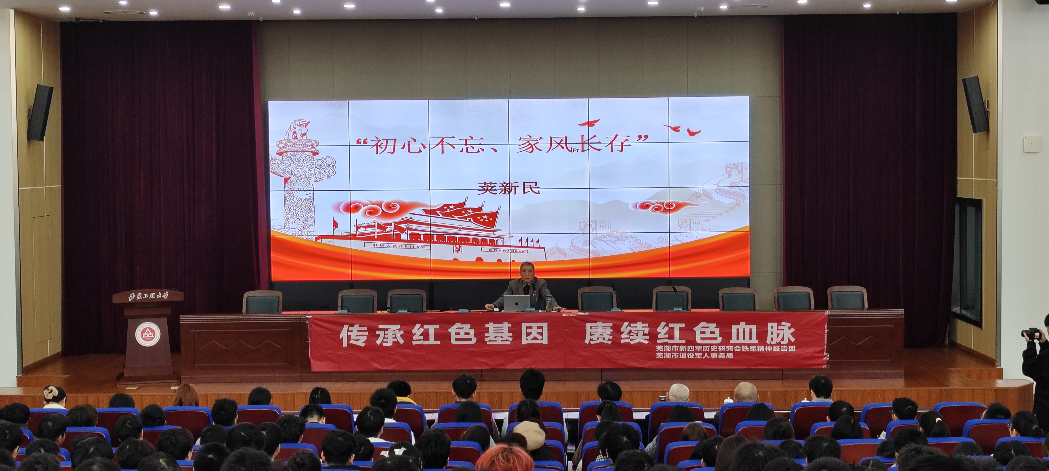 为进一步落实“三全六专”育人实践,传承红色基因,弘扬红色精神,增强广大新生的爱国情操和历史使命感,11月15日下午,计算机与信息学院在图书馆组织开展2023级新生大学生涯规划系列活动“青春心向党,奋进新征程”报告会。我校退休干部荚新民应邀与同学们进行“面对面”交流,芜湖市新四军历史研究会及铁军精神报告团的部分老党员、院党委副书记孙德茹、团委书记吕寅、新生辅导员和全体2023级新生参加了本次活动,报告会由孙德茹主持。