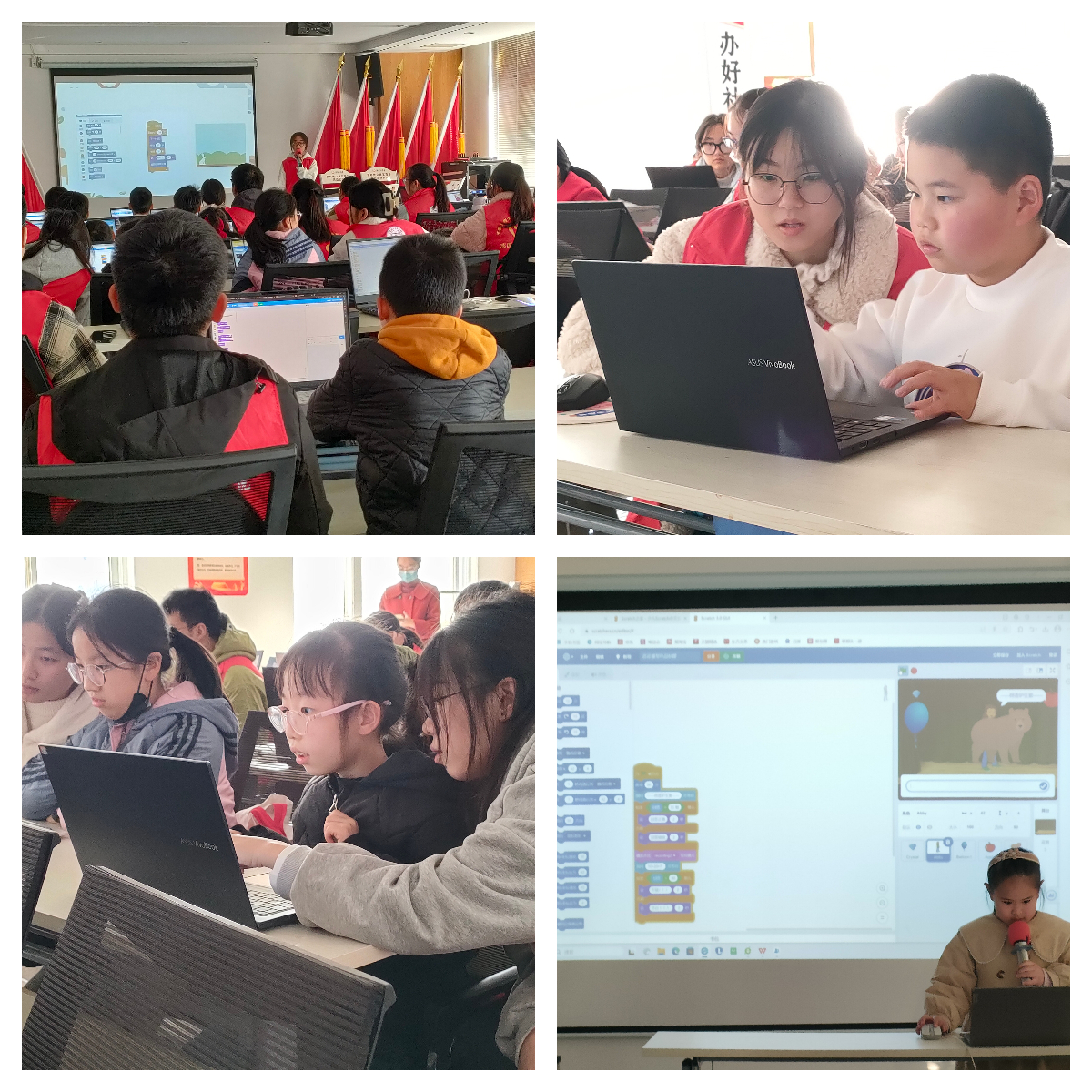 志愿“勤”践感恩行。“勤”暖初冬,“程”启少儿,11月18日,计算机与信息学院组织24名获得2023年国家奖助学金学生前往春江社区开展以感恩实践为主题的编程教学志愿服务活动,吸引了社区20余名小学生参与。志愿者们带着耐心和热情,结合实践操作和游戏化学习,生动有趣地向孩子们传授编程知识,辅导孩子们运用图形化编程平台编写各种简单的程序,完成小任务,并在课程最后进行展示,极大激发了学生学习兴趣,在他们的心里埋下提升数字素养的种子。学院通过志愿服务类实践活动引导获得国家奖助学金学生结合专业所长,用实际行动反哺社会,将感恩意识落在实处。