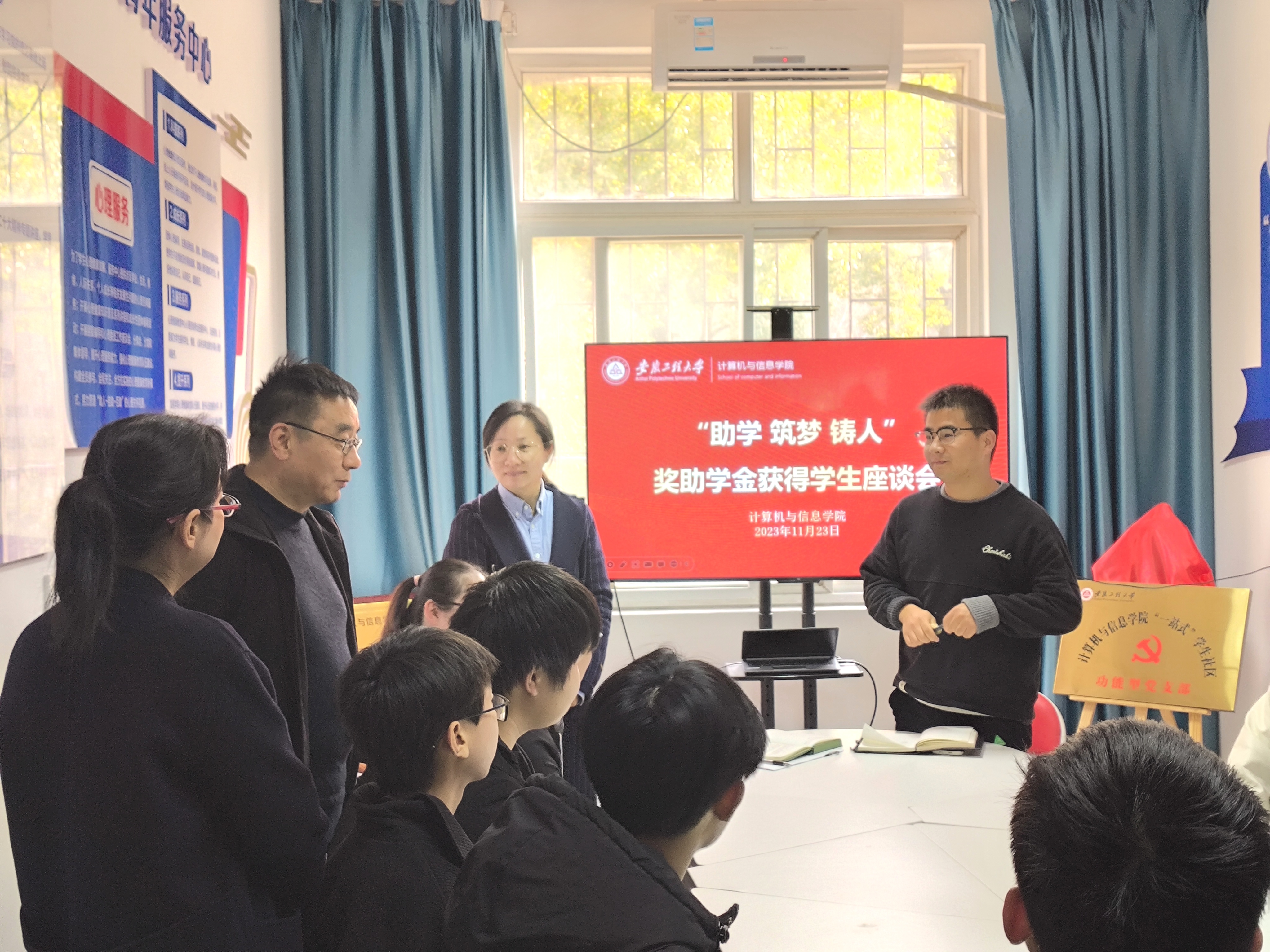 思想“正”立感恩心。11月23日下午,学院在青年服务中心召开“助学 筑梦 铸人”学生座谈会,学院团委书记、资助联络人和10余名获得国家奖助学金学生代表参加活动。副校长郑健到会指导,要求学院要加强资助政策宣传引导教育,勉励同学们要秉持诚信态度,怀着感恩的心,奋发图强学好专业。会上,学生代表围绕资助政策、困难认定流程及条件、专业学习、作用发挥等方面依次发言交流,学院资助联络人简要介绍了学校各类资助政策。此外,学院辅导员通过主题班会和谈心谈话引导学生珍惜和感恩国家助学政策,保持积极进取,立志成才,回报社会。