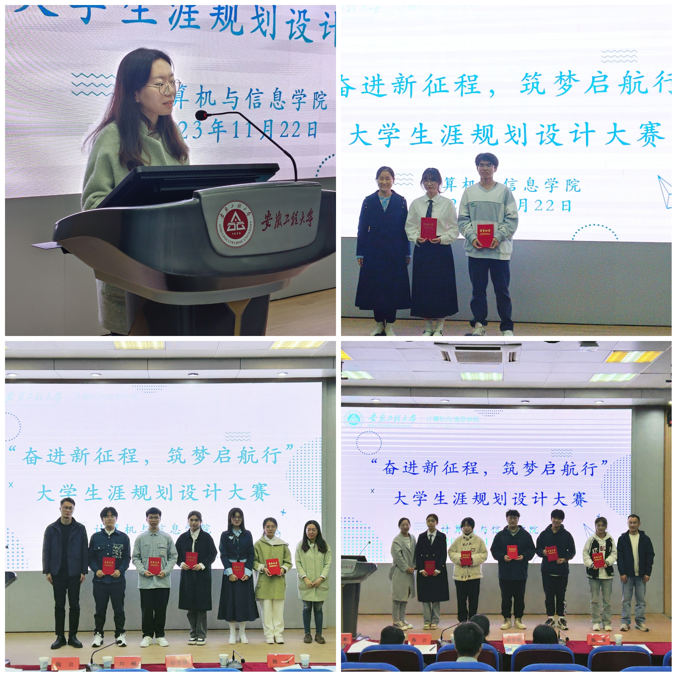 为帮助新生更好地规划大学生涯,深刻了解自己,树立大学目标,引导广大学生树立正确的成才观、择业观和就业观,11月22日,计算机与信息学院在5J117教室举办了2023年大学生涯规划设计大赛决赛,本次活动也是学院大学生涯规划系列活动的收官之作。学院2023级大学生涯规划系列活动通过主题班会、“学长学姐面对面”、创业校友分享会、离退休党员荚新民老师报告会等专题讲座、生涯规划设计大赛等方式开展。决赛现场邀请了学生处学生管理科刘畅、材料科学与工程学院陶冶、教务处学籍管理科彭安琪、院团委吕寅、陈涛担任决赛评委。经过现场评审,最终评出一等奖2人,二等奖5人,三等奖5人。