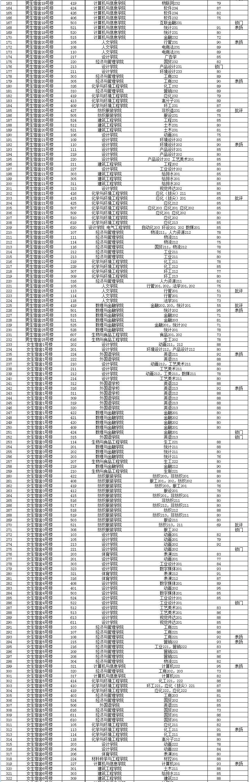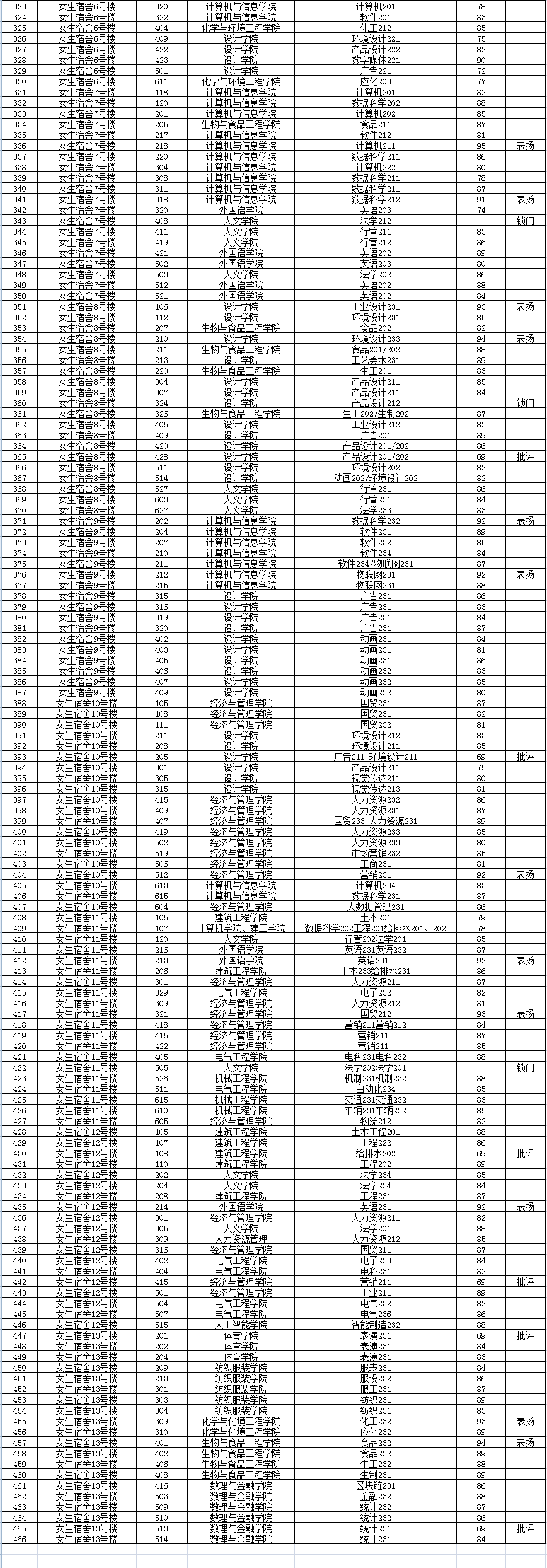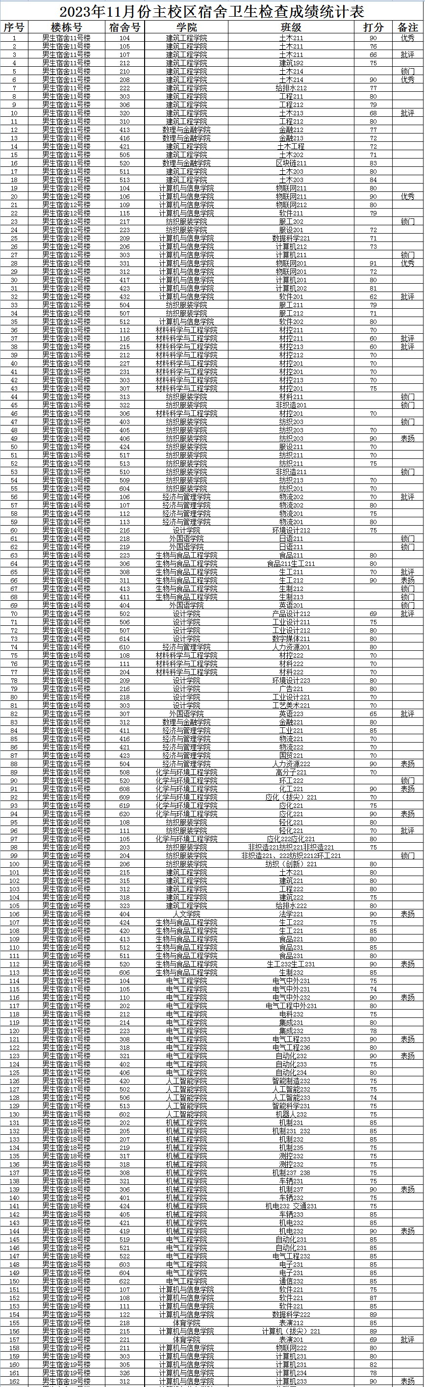 2023年11月份主校区宿舍卫生检查成绩统计表