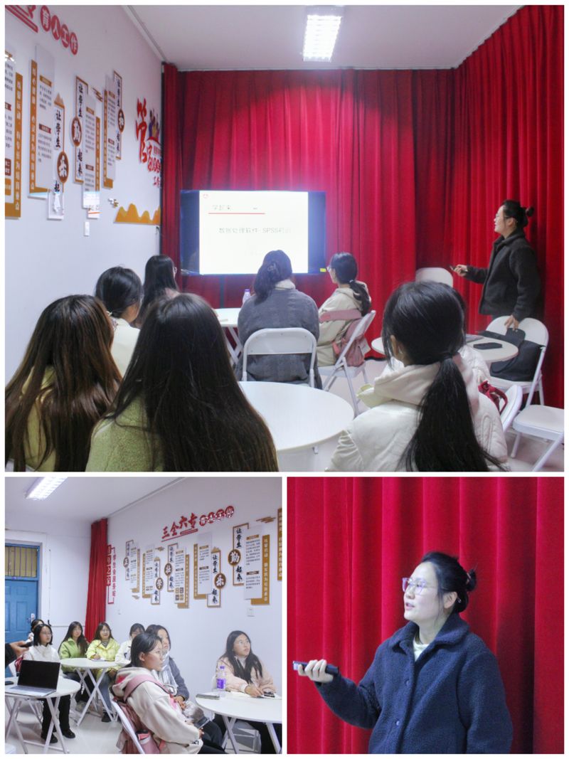 为贯彻“三全六专”育人理念,让同学们更好地“学”起来,掌握SPSS技能,了解论文的撰写步骤,经济与管理学院于11月28日18:00在女生公寓5栋102室开展第13周社区活动,本次活动由管理学博士吴可可主讲,各专业学生代表参加。