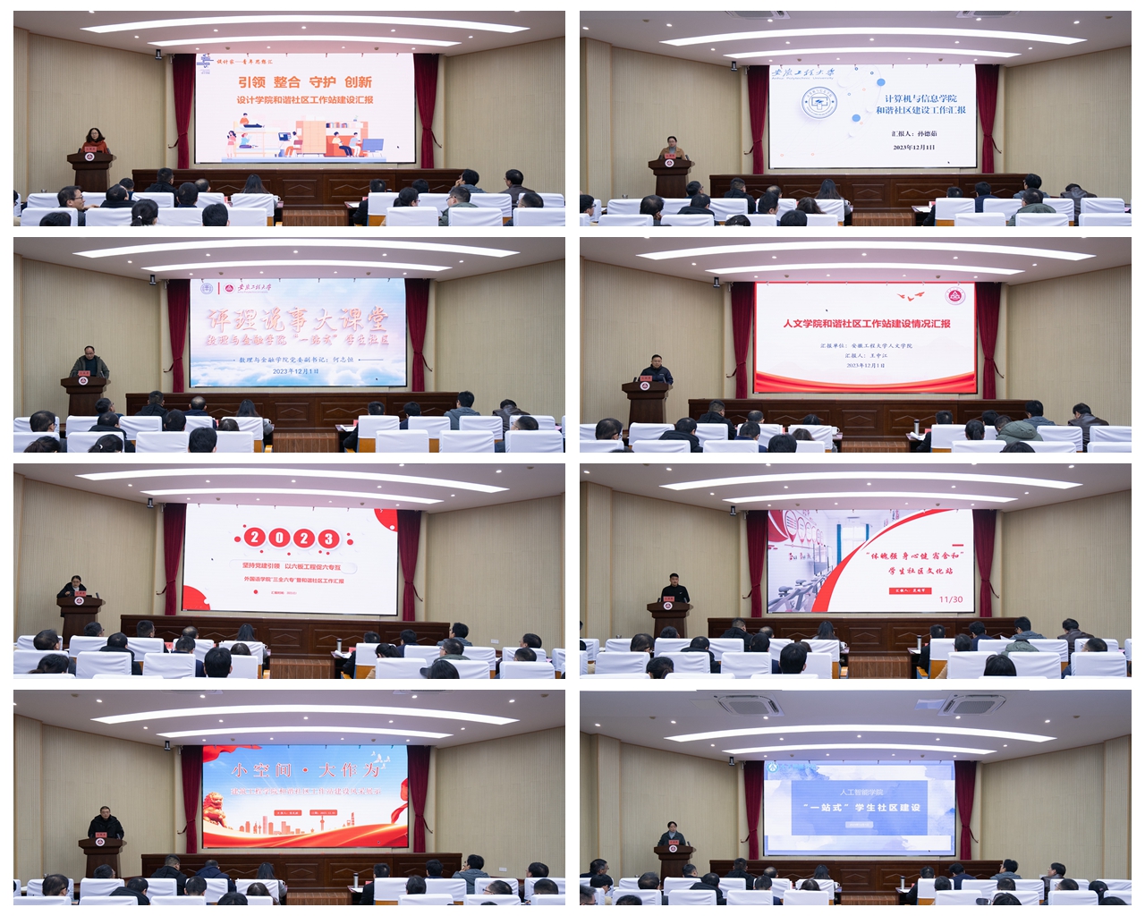 会上,15个二级学院党委副书记分别从党建引领、队伍入驻、平安社区、特色工作4个方面汇报了学院“一站式”学生社区建设推进情况和取得的阶段性成果。