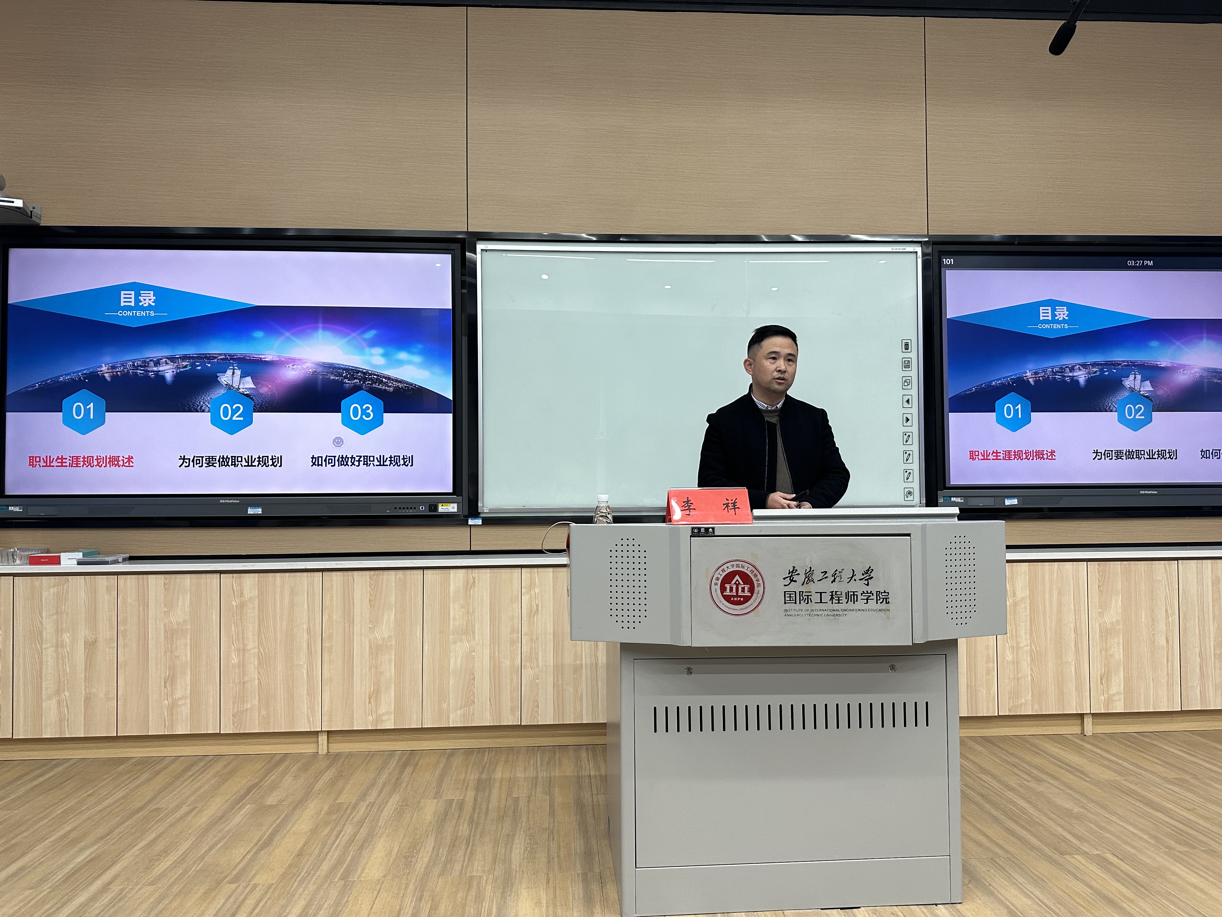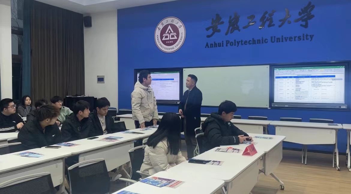 为贯彻落实“大学生促进就业认知行动”举措,推进我校毕业生高质量就业,12月13日,由芜湖经济技术开发区人力资源和社会保障局、校学生处、机械工程学院、“就在芜湖”服务站联合主办的“‘职’引未来 就在芜湖”大学生就业指导专题活动在国际工程师学院校区X101教室成功举办。芜湖经济技术开发区人社局人才中心科长李强、奇瑞汽车股份有限公司人力资源部高级招聘经理李祥受邀出席,机械工程学院团委副书记王海燕及学生代表参加活动。