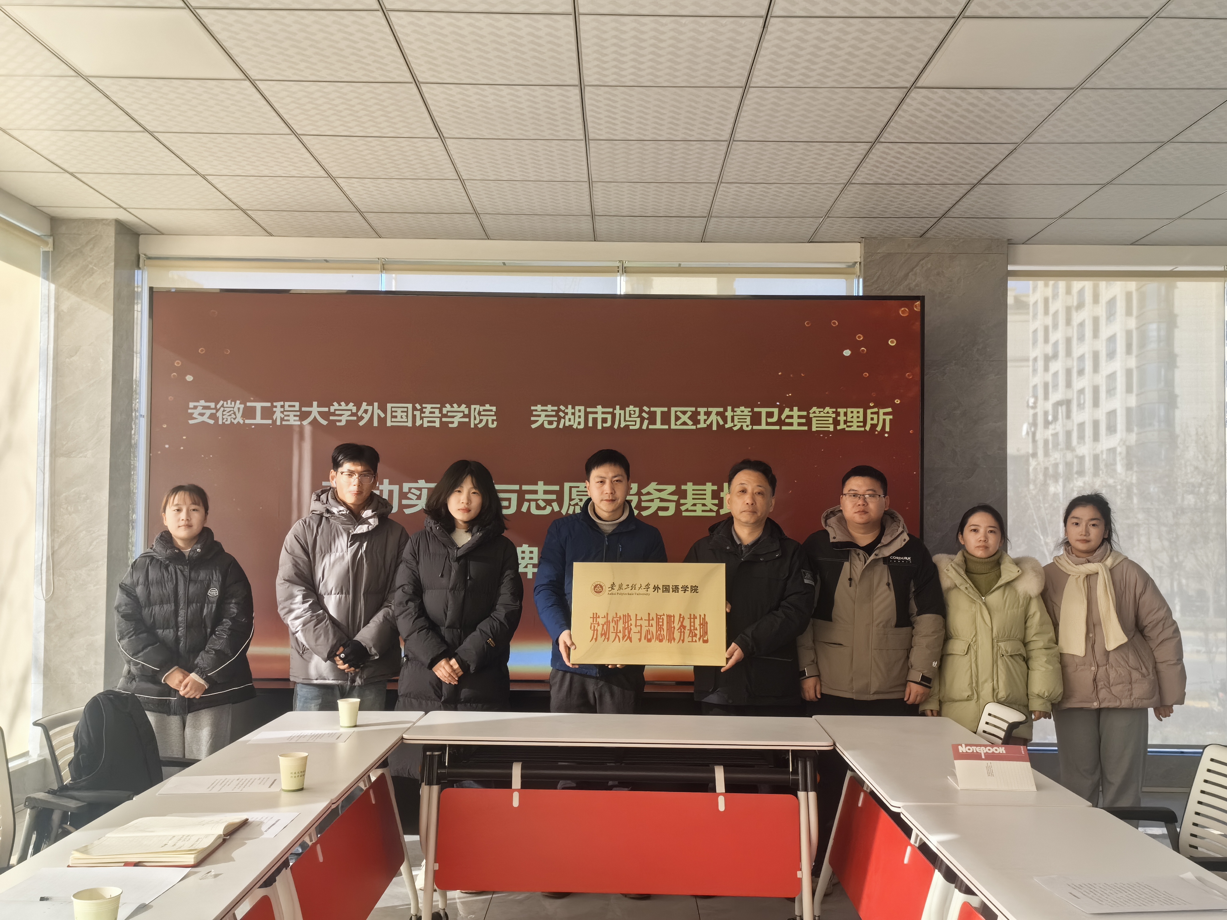 为贯彻落实学校三全六专”实践育人要求,进一步推深做实学院劳动教育,引导学生“勤起来”,12月22日上午,外国语学院赴鸠江区环境卫生管理所开展劳动实践与志愿服务实践基地授牌仪式。鸠江区环卫所副书记、副所长徐兵,鸠江区环卫所综管办主任娄欣,外国语学院团委负责人张君以及“紫阳花”关爱户外劳动者志愿服务团队部分成员参加了本次活动。