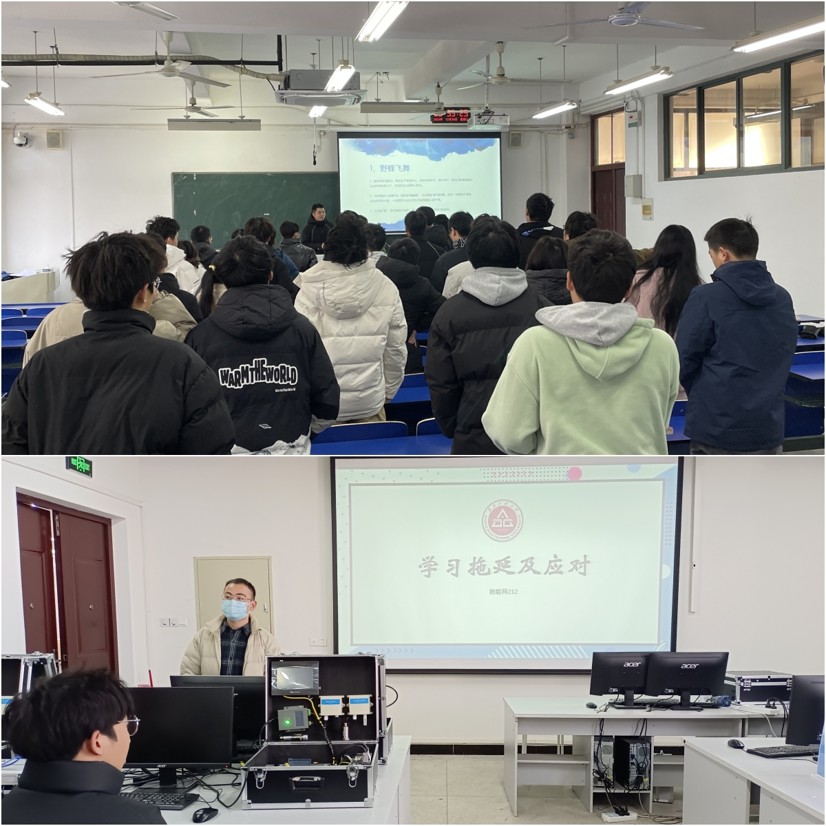 为加强青年学生心理健康教育,做好心理健康知识普及和宣传,引导学生保持积极乐观的心态,辅导员承孝云开展心理健康主题班会,围绕负面情绪的影响、应对负面情绪的小妙招、情绪ABC理论等方面进行讲解,并开展“野蜂飞舞”心理小游戏;物联网212班心理委员李家诚围绕“学习拖延及应对”为主题开展心理辅导,辅导员陈涛提醒学生要养成良好的学习习惯,学会自我调节,保持积极乐观的心态。