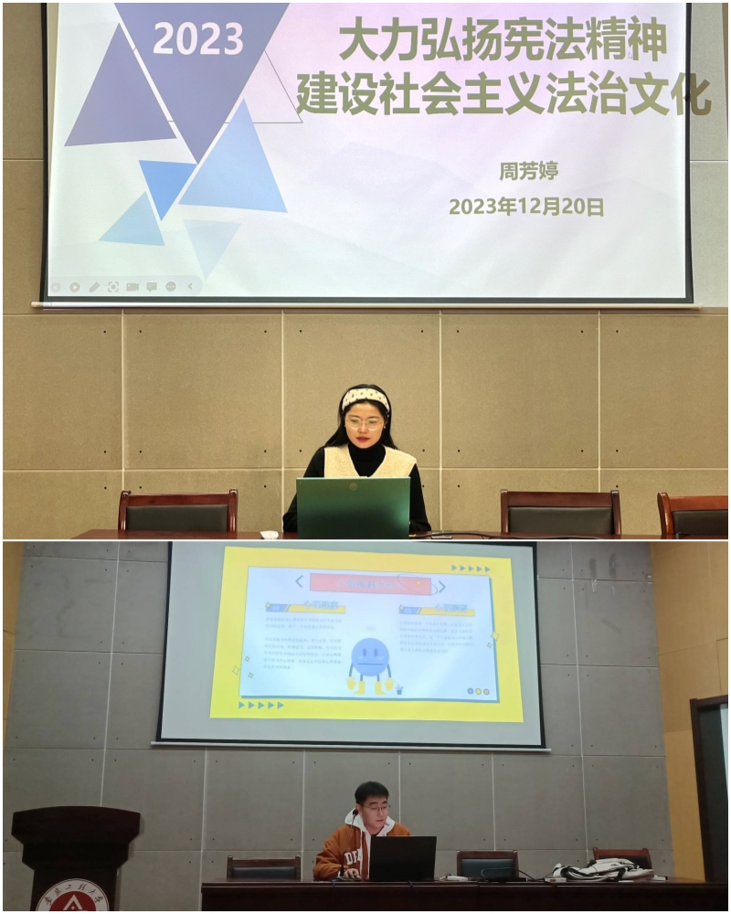 为进一步加强青年的政治引领,争做青年朋友的知心人、热心人、引路人,把握广大青年的脉搏,帮助住青年学生扣好人生第一粒扣子,辅导员魏晓飞开展“挺膺担当践初心,青春逐梦正当时”主题班会,计算机222班团支部书记文杰向同学们阐述了理解挺膺担当的内涵、青年人该如何培养挺膺担当的品质、挺膺担当对共筑中国梦的意义;物联网222班组织委员邵承杰从宪法精神概述和弘扬宪法精神的意义两个方面开展宪法法治教育活动,辅导员周芳婷鼓励学生要认真学习宪法,大力弘扬宪法精神,争做新时代知法、懂法、守法的好青年。