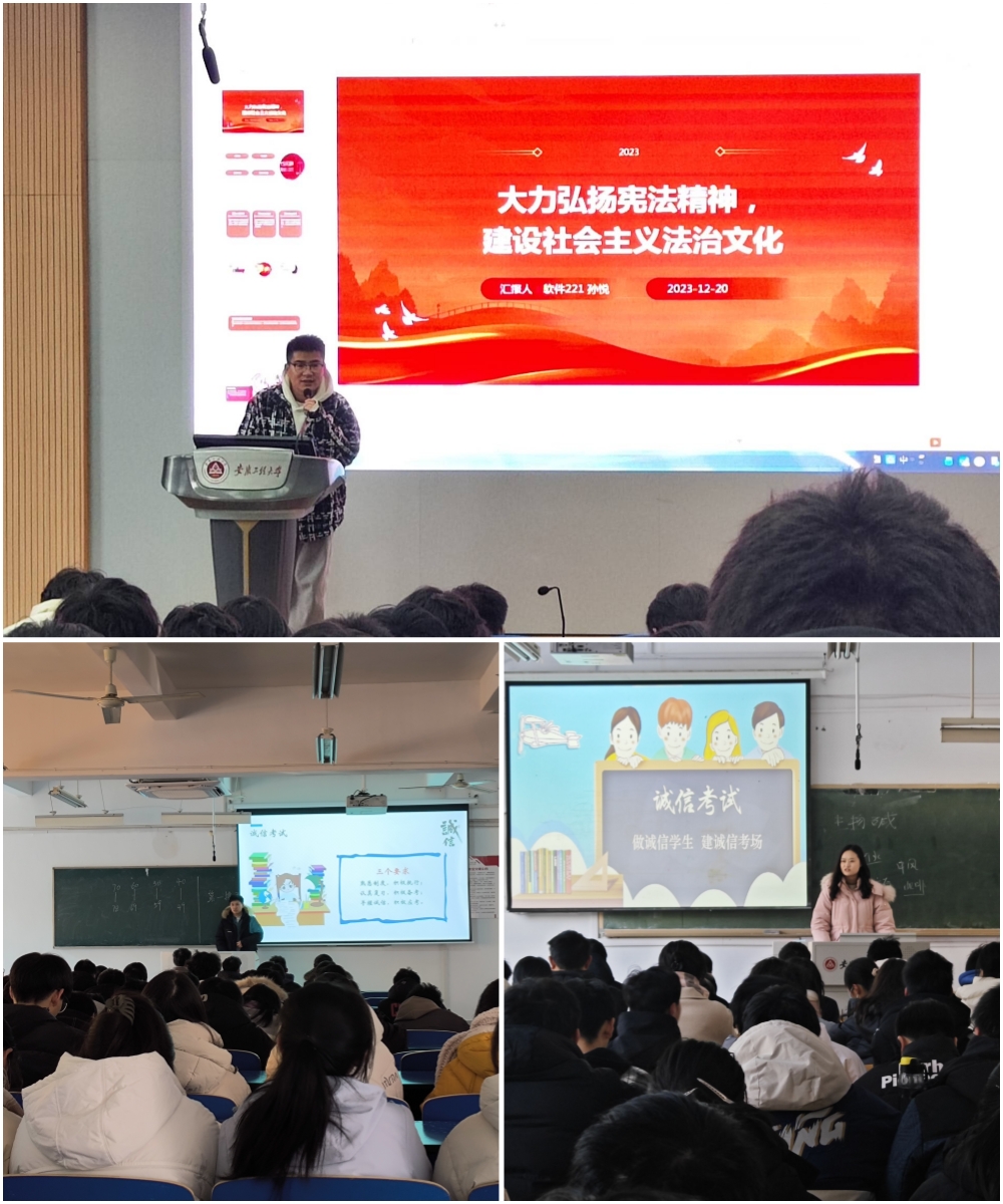 为进一步做好学生日常管理工作,辅导员瞿陆子慧和陈安围绕诚信考试、预防电信诈骗、冬季宿舍安全等方面开展主题班会,叮嘱学生做好冬季常见传染病的预防,保持身心健康;辅导员孙力力开展马克思主义宗教观教育,他指出要明确共产党员是比一般公民具有更高政治觉悟,更高政治信仰,更强组织纪律性的特殊公民,鼓励同学们要坚定科学理念,树立正确的马克思主义宗教观。