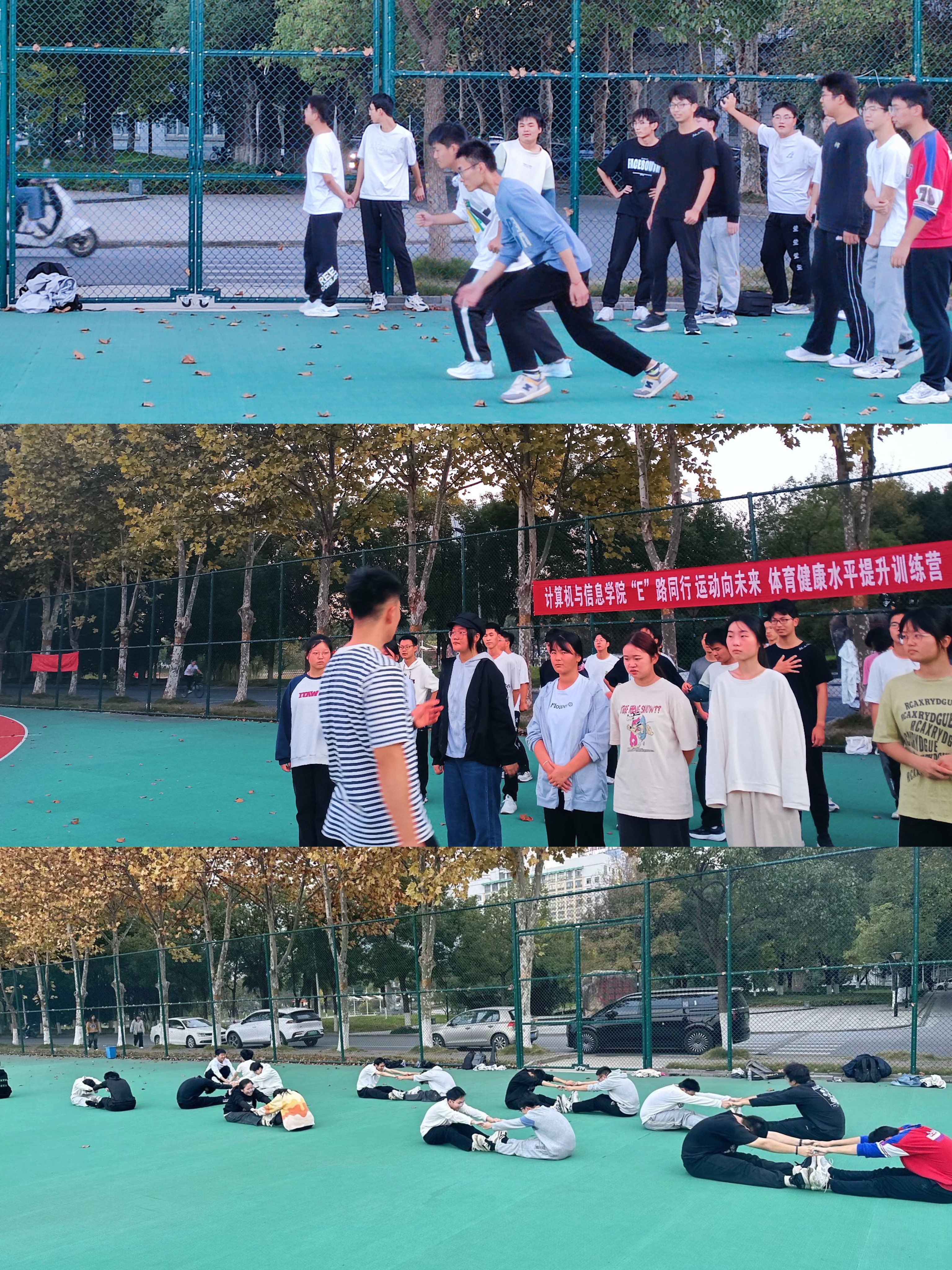 为给学生提供体育锻炼平台,学院前期积极宣传体育健康水平提升训练营并下发通知,召开体育委员座谈会,倾听学生意见,树立健康理念,积极动员和引领班级同学提升身体素质,提高健康水平,让学生进一步了解学院“三全六专”工作整体思路,帮助学生更好地参与“壮”起来育人实践中。通过制定训练营考勤和纪律要求、奖惩措施激励学生积极参与,培养自律性和责任感,促进综合素质全面发展,学生共参与训练营活动500余人次,参与训练营的部分同学表示已形成运动习惯,定期进行身体锻炼。