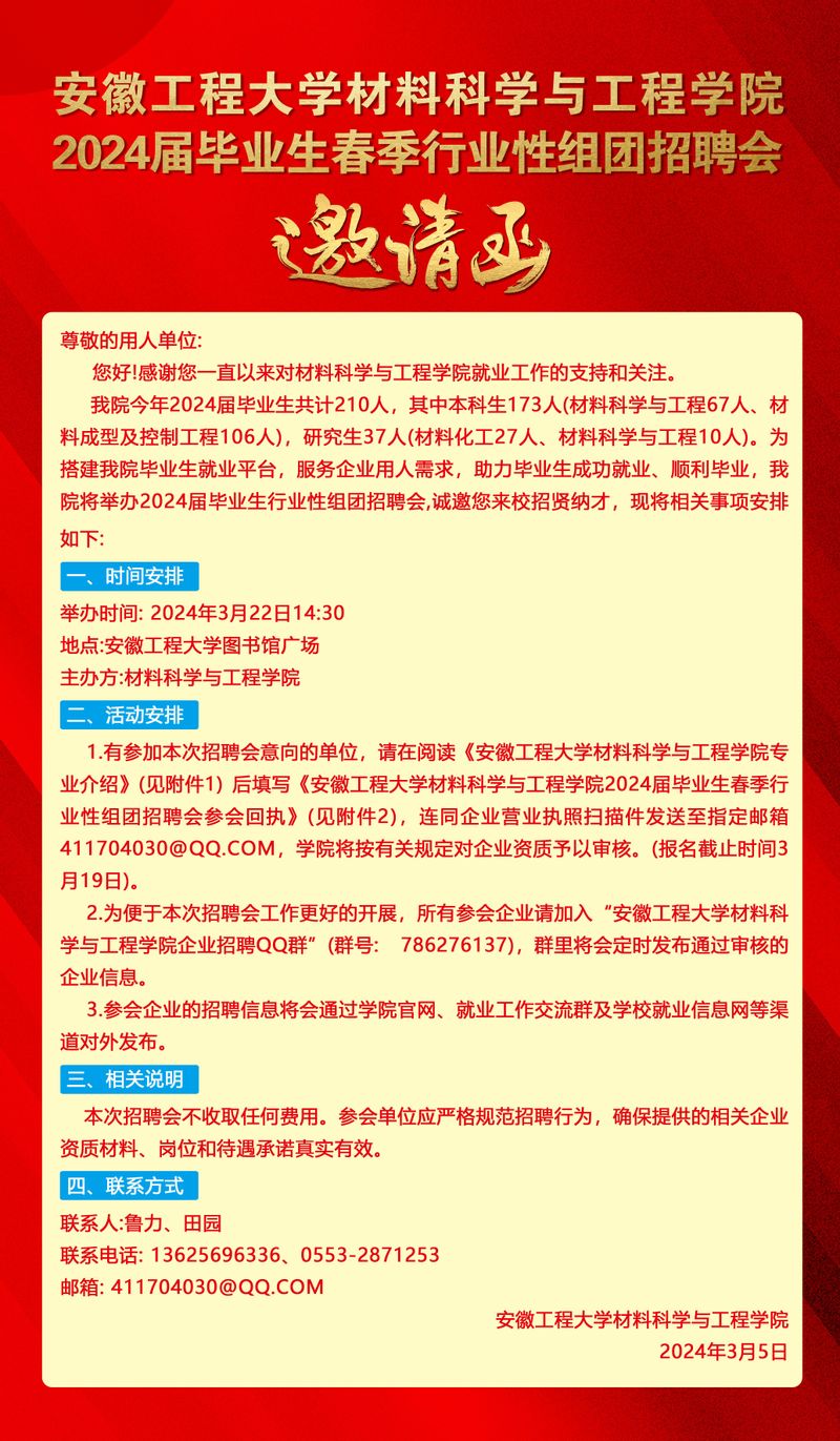 RayBetApp官网下载 材料科学与工程学院2024届毕业生春季行业性组团招聘会邀请函