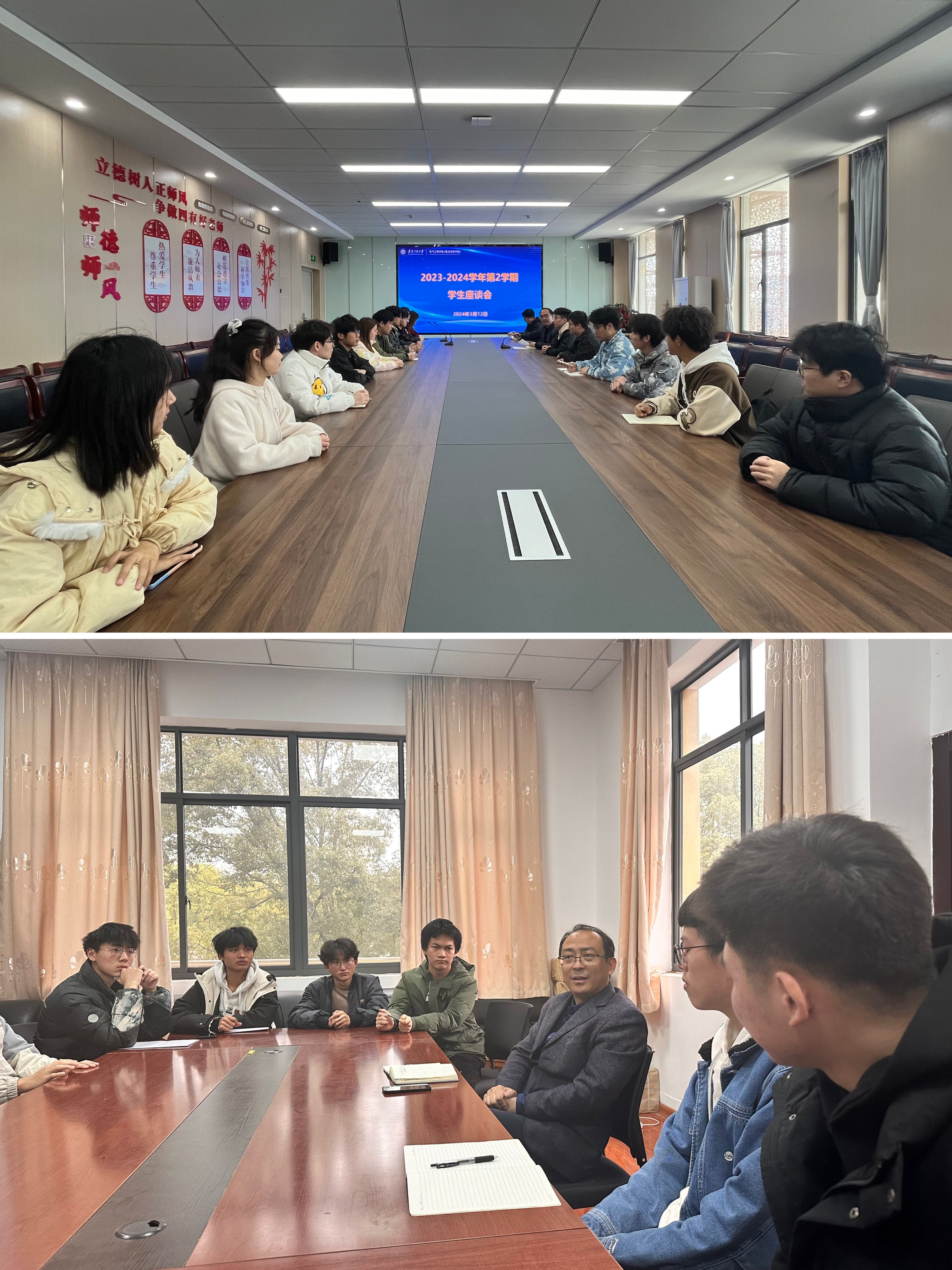 举行座谈交流,直面学生诉求。3月12日、13日,学院在本部和国际工程师学院校区分别召开新学期学生思想动态调研座谈会,学院党委副书记迟传德、辅导员和各年级各专业学生代表参会。座谈会上,迟传德针对学生所提出的关于学习生活、就业、考研等方面的问题与疑惑,逐一给予了回应。他强调,新学期开始,要调节好个人状态,全身心投入学习当中,牢牢掌握所学知识,要学有所思、学有所悟、学有所获,他期待看到每一位学子能在学校学有所成,都能以靓丽的姿态走向工作岗位。