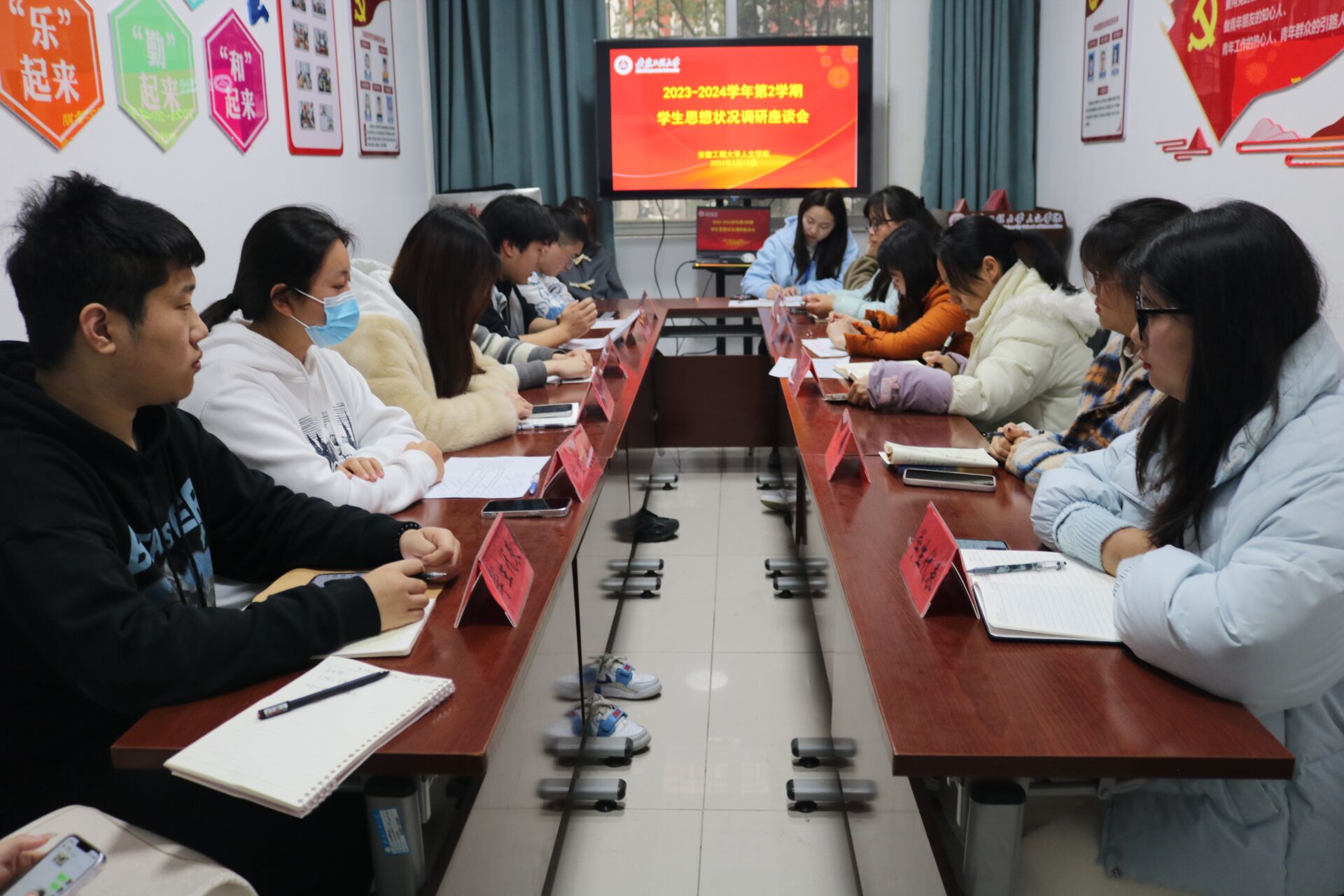 为促进“三抓”和“三全六专”工作落实落细,深入实施“时代新人铸魂工程”,更好地掌握学生思想动态、心理状态、学习生活等情况,精细化做好思想教育工作,3月13日下午,人文学院在和谐社区工作站暨“青年之家”学生会服务站召开新学期学生思想状况调研座谈会。人文学院党委副书记余本祺、团委副书记利昕云、各年级学生代表参加了本次会议。
