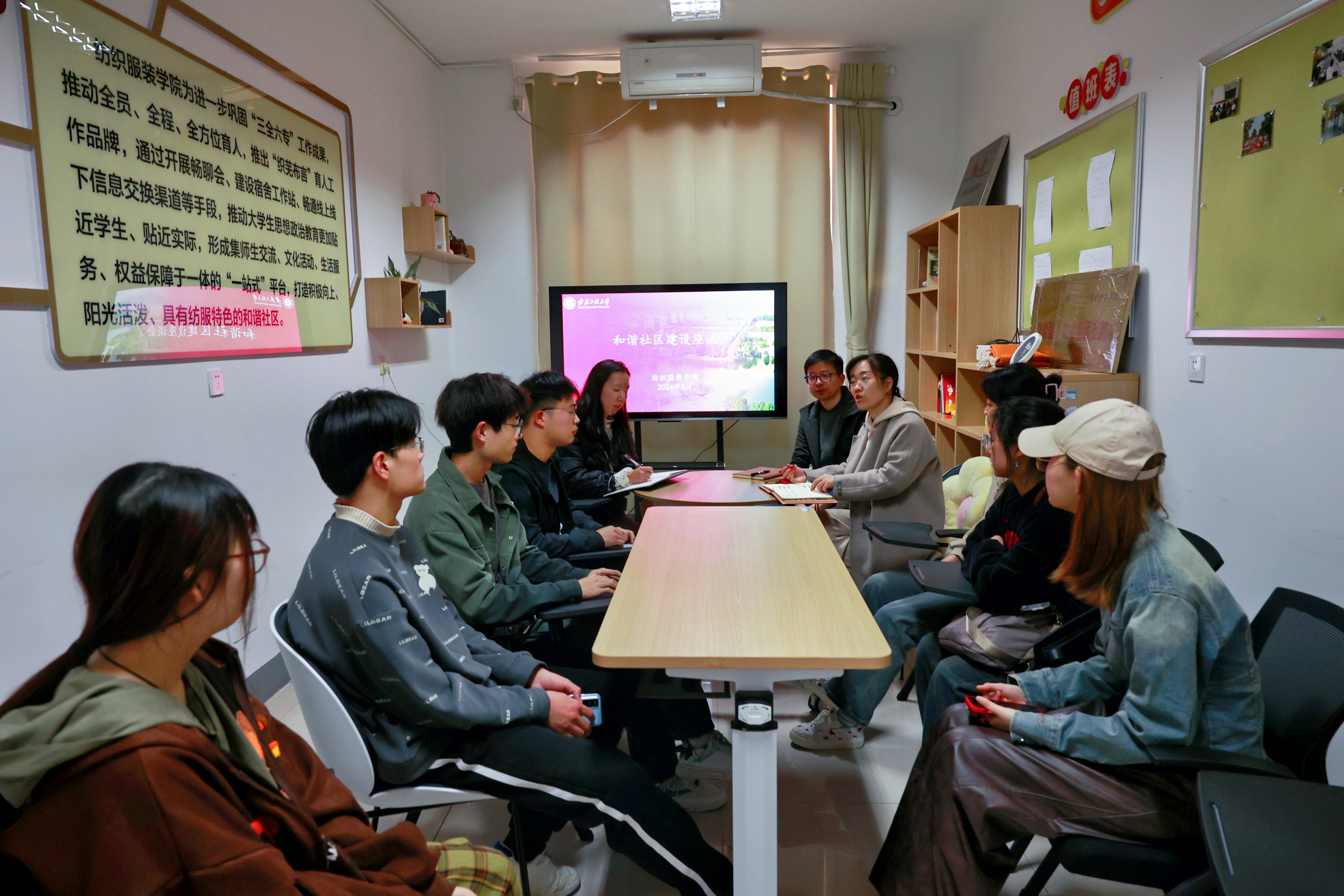 为进一步推动协和社区建设,推动宿舍示范创建。3月22日,纺织服装学院在“一站式”学生社区工作站召开和谐社区建设座谈会。学院党委副书记梁雪松、社区指导老师童超梅和学生社区自管团队负责人、部分寝室长等参加座谈会,会议由院团委书记陈倩主持。
