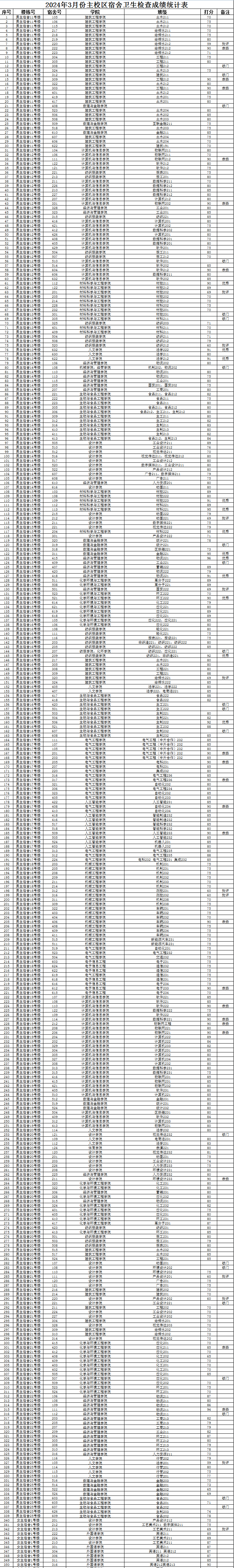 2024年3月份主校区宿舍卫生检查成绩统计表