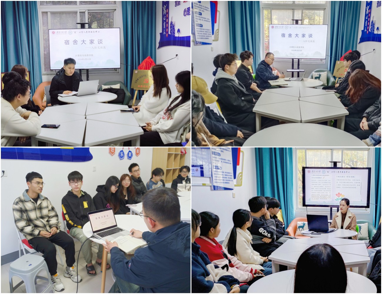 为持续推动“一站式”学生社区建设,营造良好宿舍氛围,构建和谐人际关系,3月25-31日,计算机与信息学院开展宿舍大家谈交流会,学院辅导员陈涛、瞿陆子慧、陈安及学生干部代表参加。