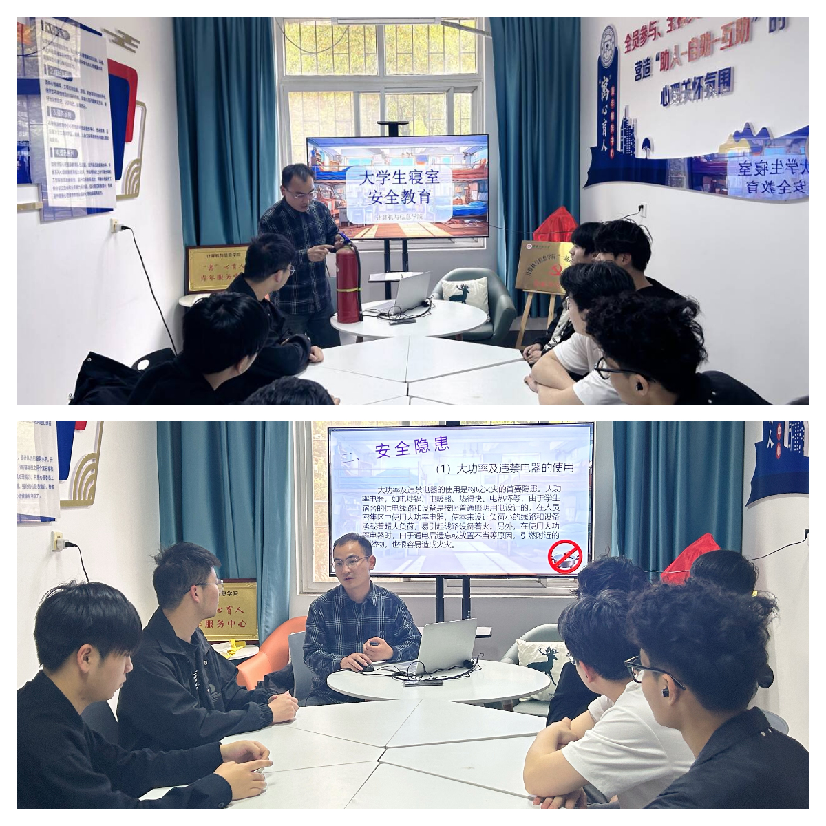 随着烟雾的释放,按照“安全第一、就近逃生”的疏散原则,各位辅导员迅速引导楼内学生沿应急疏散安全路线撤离至安全空地处。疏散过程中,学生井然有序,捂住口鼻,俯身迅速完成撤离。演练结束后,辅导员陈涛在学院青年服务中心开展学生寝室安全主题教育并现场演示如果操作使用灭火器。他指出大学生寝室存在使用违规大功率电器、私拉电线、随意使用明火等安全隐患,同学们要坚决杜绝违规行为,消除隐患,为个人和集体安全负责。