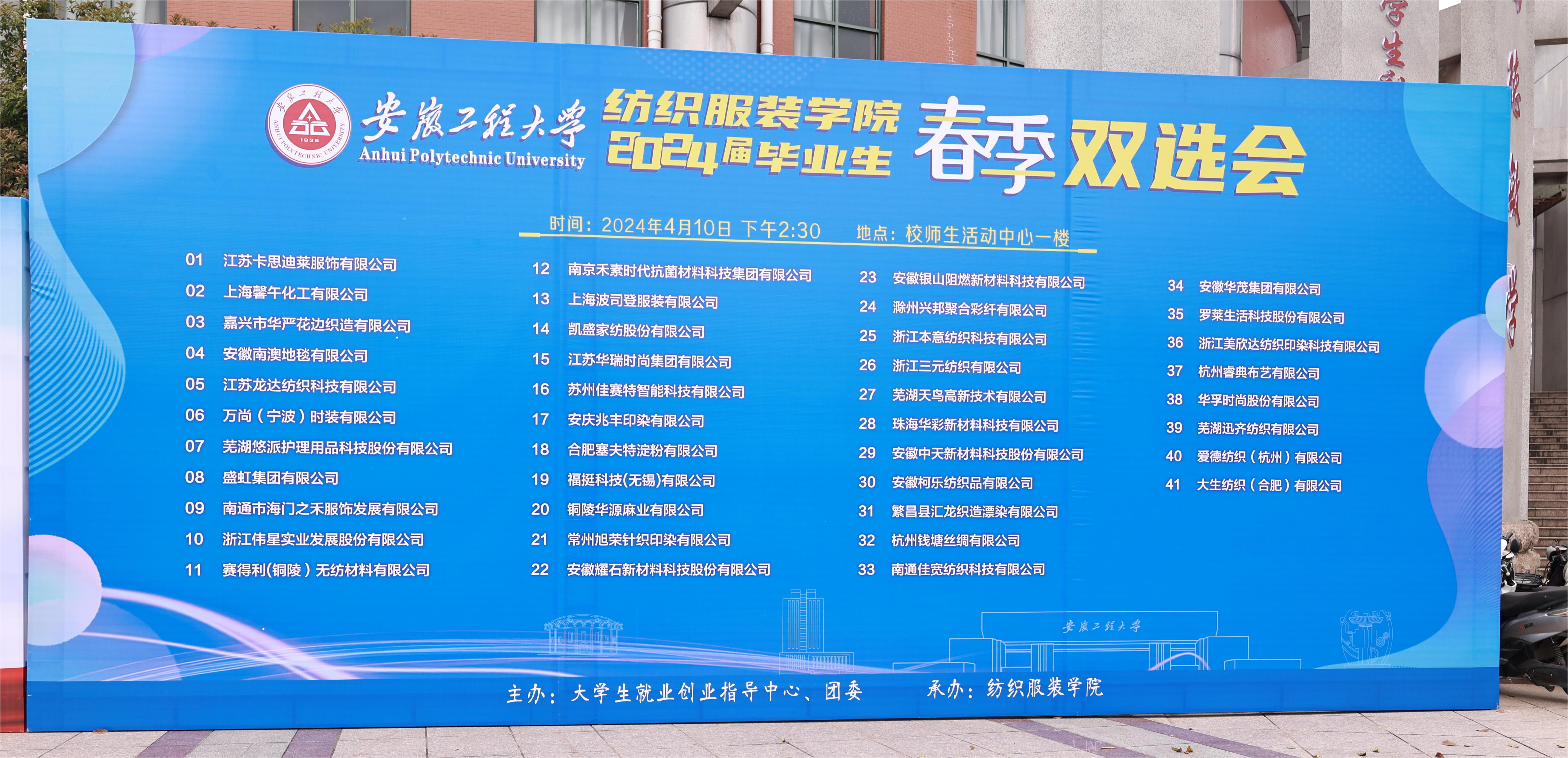 本次招聘会吸引了包括上海波司登服装有限公司、江苏卡思迪莱服饰有限公司、安徽华茂集团有限公司、芜湖优派护理用品科技股份有限公司等知名企业,招聘岗位涵盖纺织、服装上下游全产业。招聘会现场人头攒动,气氛热烈,用人单位与求职学生面对面深入交流,达成了初步就业意向。纺织服装学院领导和专业老师也在双选会现场,与用人单位进行了交流,了解企业发展和人才招聘情况,推荐毕业生就业。