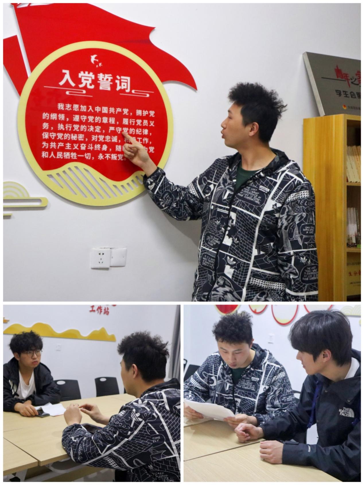 高天宇以“留初心,谈担当”为主题,围绕入党的程序,党员在党支部及日常学习生活中做什么表率两方面的内容展开。首先,高天宇从共青团员是党员的预备军,要在日常生活中,在点点滴滴的小事中树立党员自觉,做好各项工作,发挥先锋模范作用。同时,从党性的锤炼和修养对到场发展对象提出了要求,要坚持入党初心,勇于担当,积极为国家、民族、社会的发展进步作出自己的贡献,要积极主动地参加学校、学院的改革与发展,在新时代新征程中努力发挥自己的作用。到场的发展对象也纷纷表示将牢记嘱托,践行初心使命。最后,高天宇带领发展对象重温入党宣言。