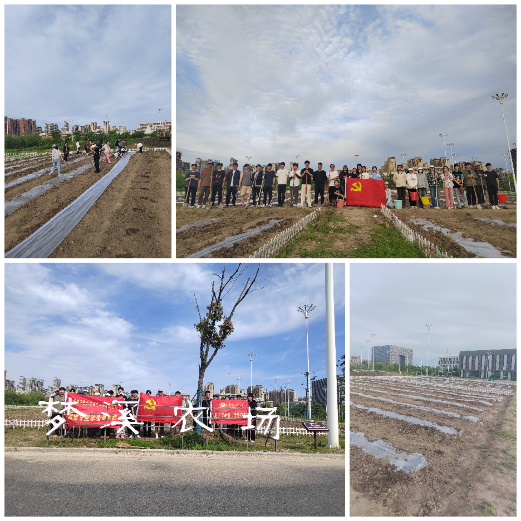 播种希望,期待丰收。4月24日下午,电子专业第二学生党支部与通信专业学生党支部联合开展了支部共建暨西瓜播种活动。在支部书记范保程、贺佳云的指导下,同学们认真学习了刨坑、播种、埋土、浇水、封地薄膜等西瓜种植技巧。随后,大家分组实践,亲手将种子播撒在肥沃的土壤中。同学们热情高涨,欢声笑语中完成了播种任务,期待着未来的丰收时刻。参与此次系列活动的同学们纷纷表示,此次活动不仅让他们掌握了劳动技能,更在劳动中锤炼了意志品质。他们希望能够继续参与西瓜秧苗的养护工作,亲身体验劳动的艰辛与喜悦,亲口品尝到自己的劳动成果。