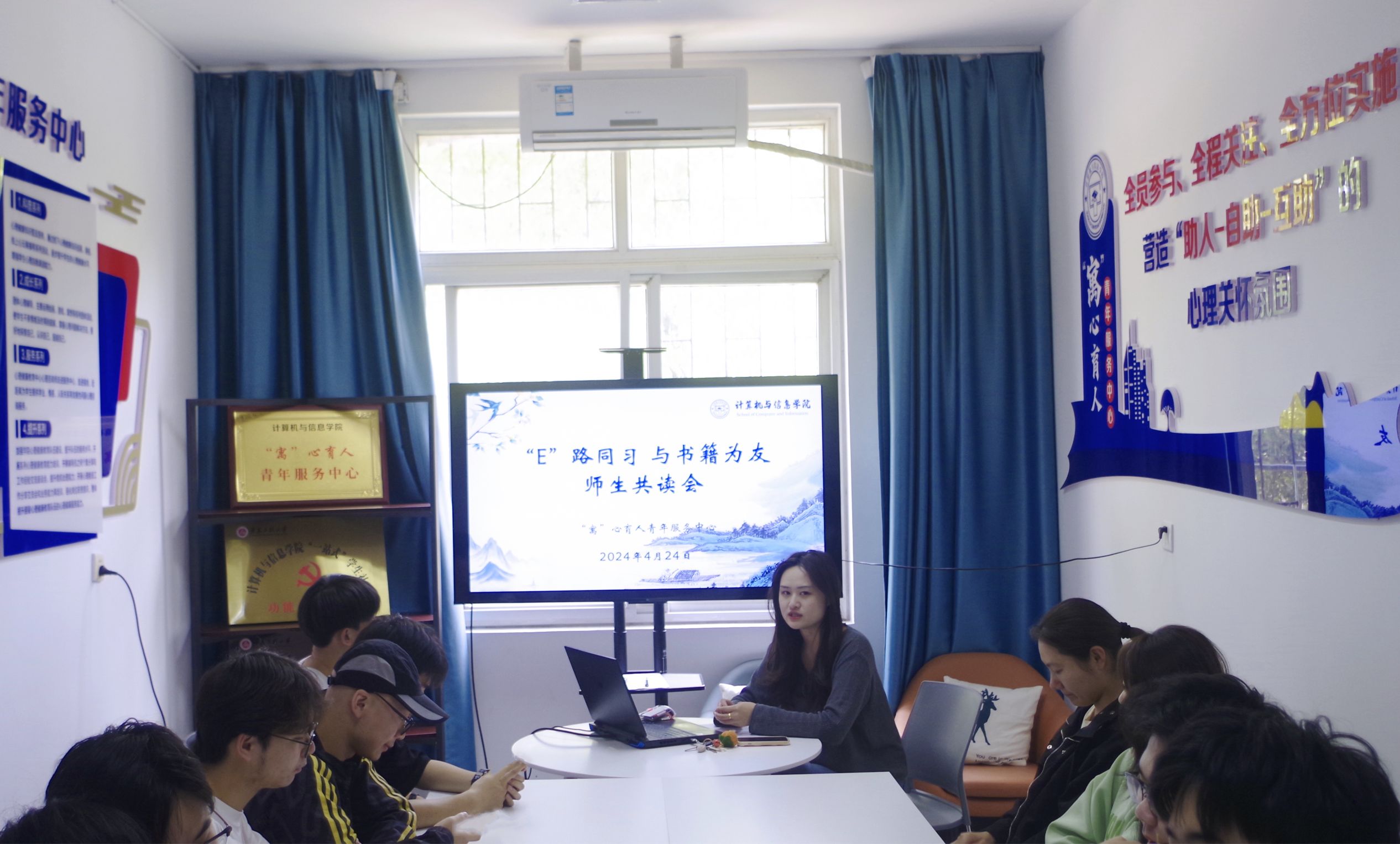 为纪念第29个“世界读书日”,贯彻落实党的二十大关于深化全民阅读活动的重要部署,进一步推动学院书香社区建设,4月24日下午,计算机与信息学院“‘E’路同习,与书籍为友”第二期师生共读会在学院“寓”心育人青年服务中心暨“青年之家”学生会服务站顺利开展,活动由辅导员瞿陆子慧主持。