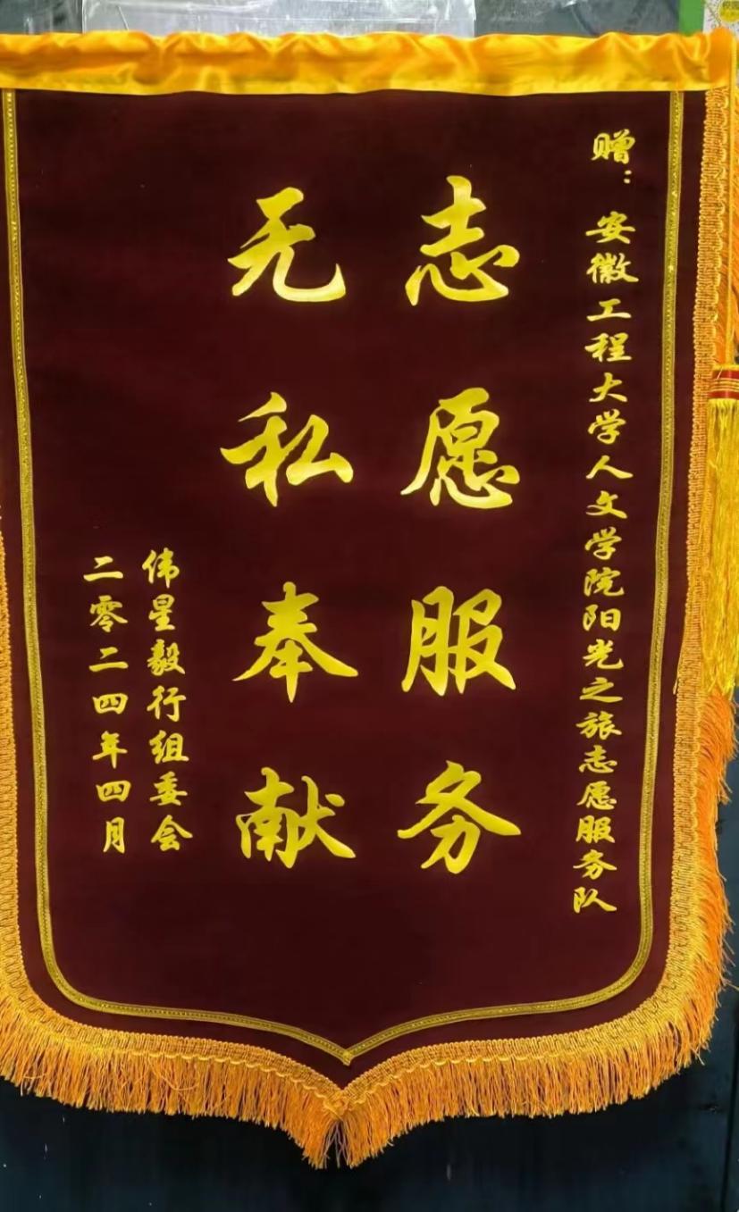 近日,芜湖市第七届50公里毅行活动组委会向RayBetApp官网下载 人文学院“阳光之旅”青年志愿者服务队赠送锦旗,以此感谢人文学院志愿者对赛事服务保障工作做出的突出贡献。