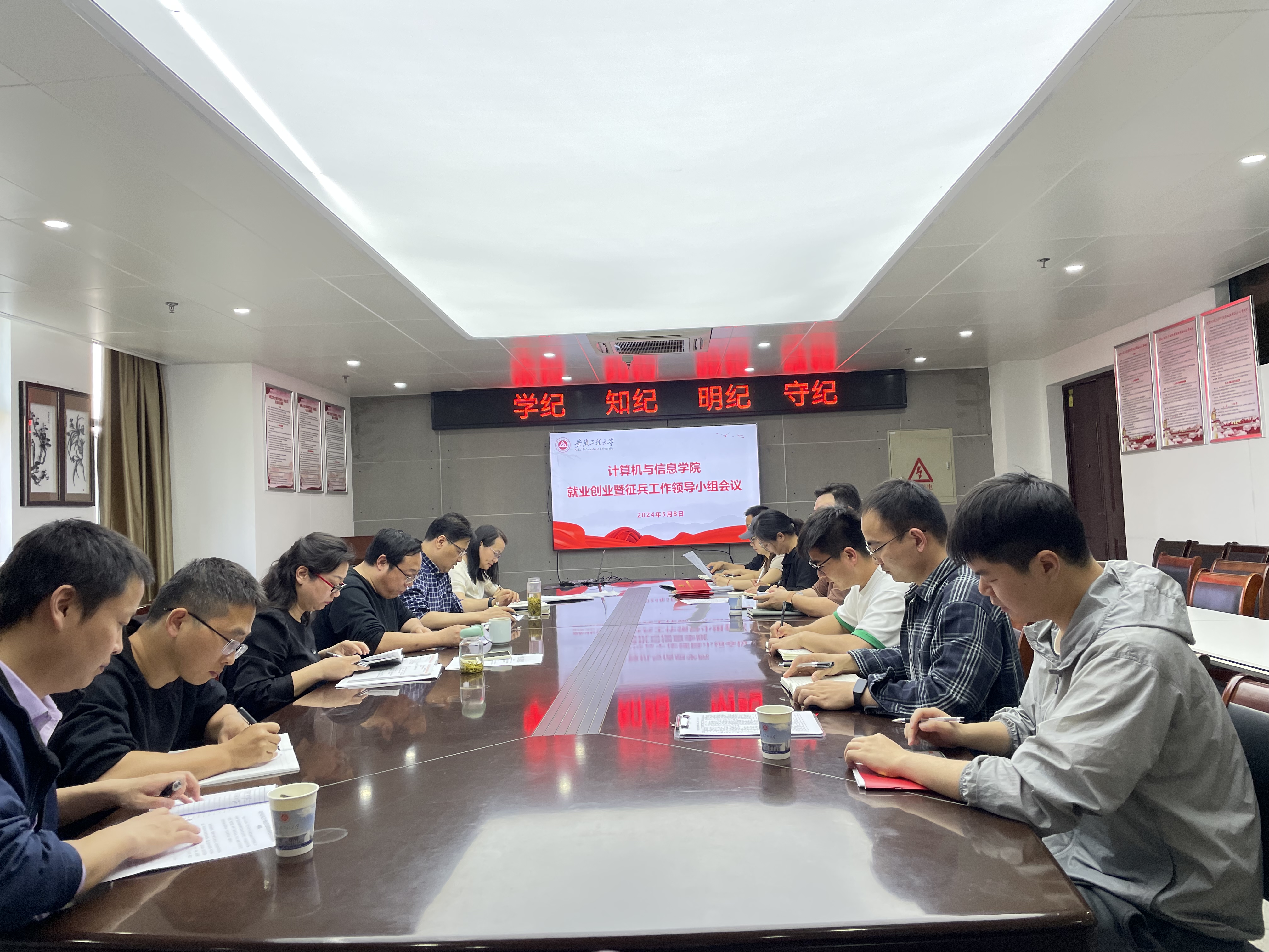 为落实全省和学校2024届毕业生就业创业推进会工作要求,全力做好学院2024届毕业生就业和征兵工作,5月8日,学院召开就业创业暨征兵工作领导小组会议,学院党委书记李卫东、院长汪军、党委副书记孙德茹、副院长刘涛、党政办公室主任、各系主任、学工秘书和毕业班辅导员参加会议。会议由汪军主持。