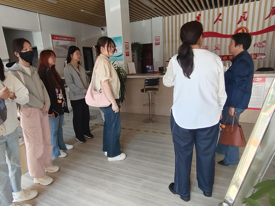 在七更点社区党群服务中心,社区书记汪萍对大家的到来表示热烈欢迎,针对社区矛盾调解、重点人员摸排、安全隐患排查等日常工作进行介绍,并就协助社区工作人员深入居民家庭开展户籍信息调查、消防安全隐患排查等志愿服务工作内容进行讲解。吴燕民老师指出,促进社区发展、维护社区和谐是开展社区实践的主要目的和期望结果,志愿者要关注社区发展的理论根源,以及如何在社区中实现社区发展理论,将社区发展与公共服务、产业发展相结合,从而促进社区进步。